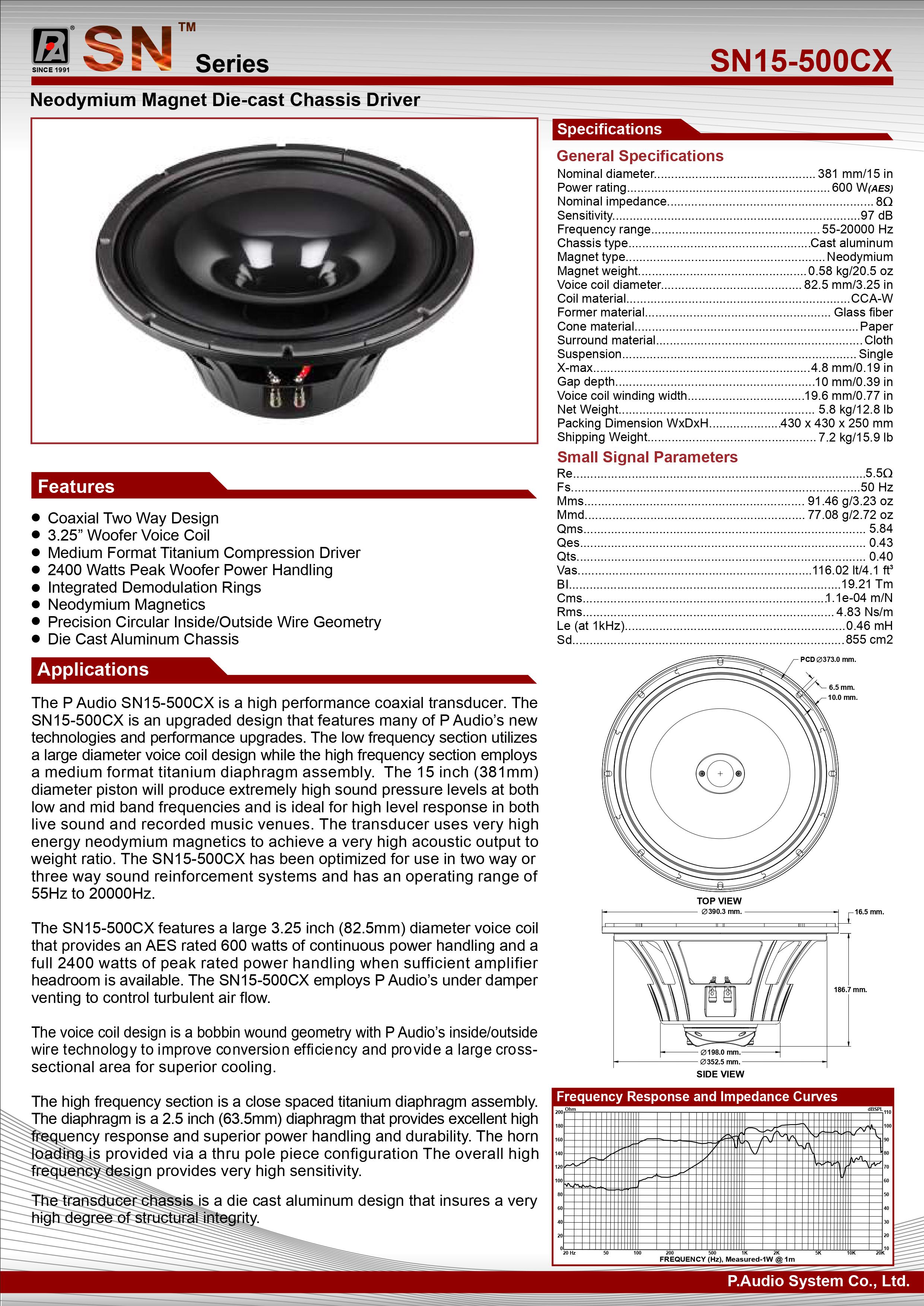 ✨LOA RỜI PAUDIO 4 TẤC TỪ NEO SN15-500CX (15") (1 cặp) – Hàng Chính Hãng