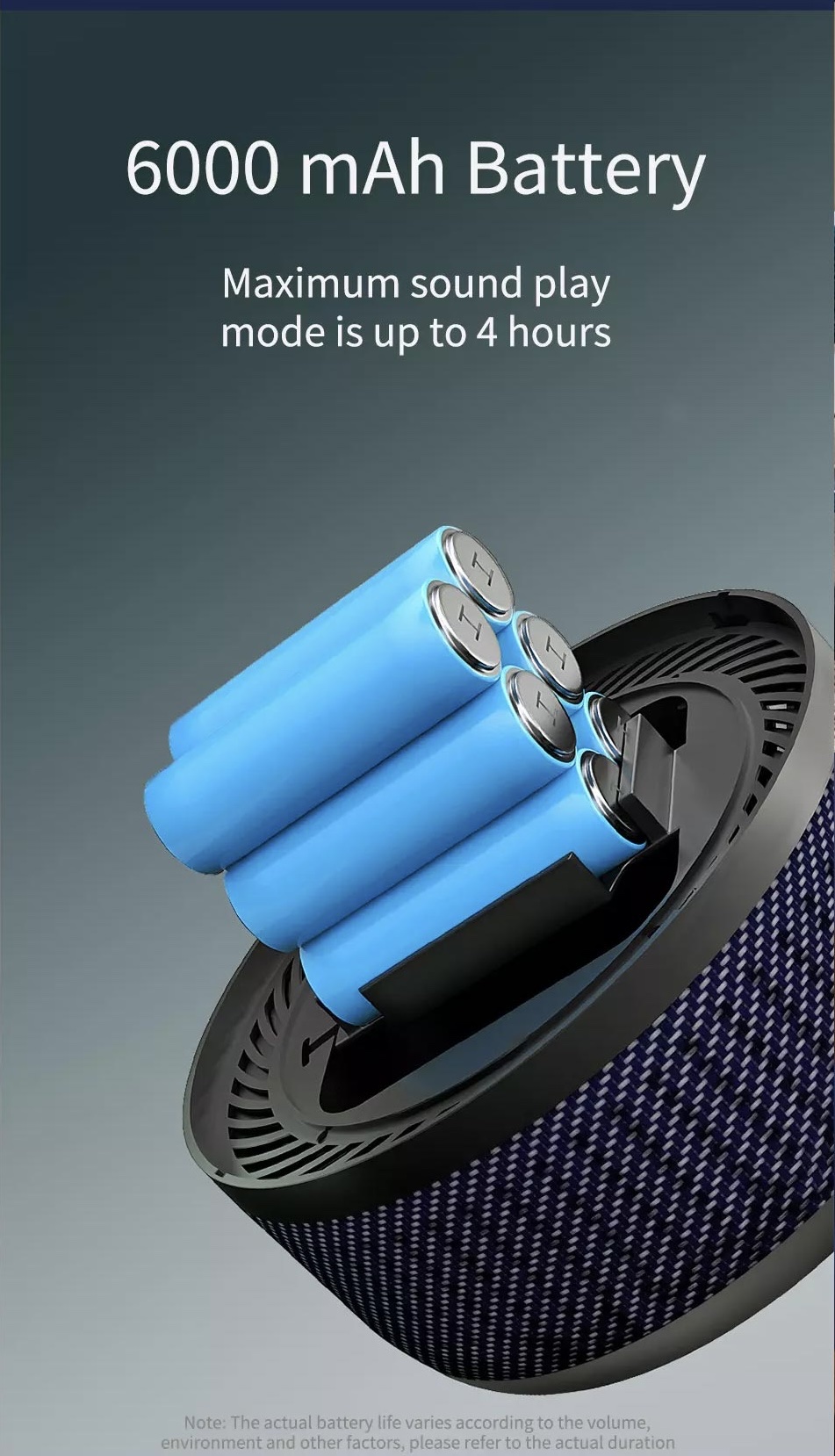 Pin 6000mAh cho phép bạn chơi nhạc lên đến 4 giờ trong khi sử dụng chế độ phát âm thanh tối đa.