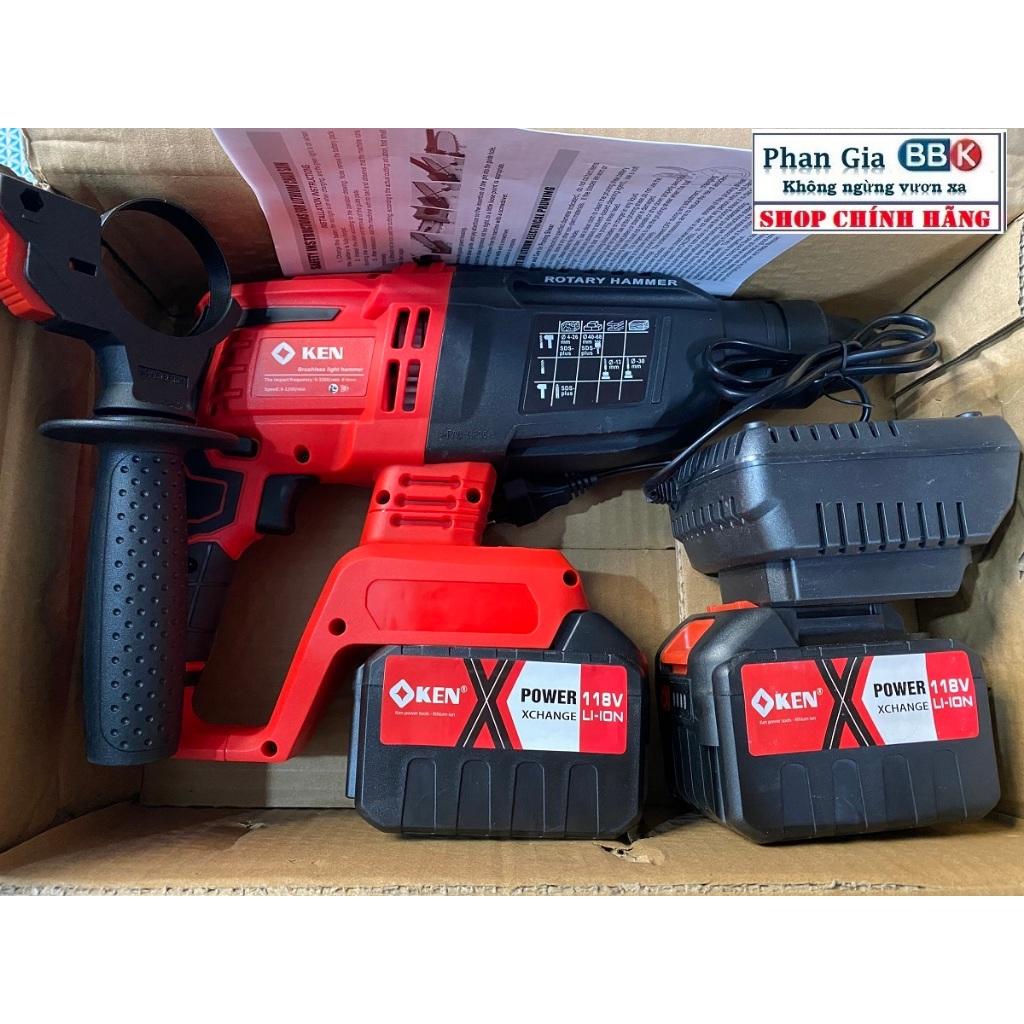 ✨[LOẠI 1] Máy Khoan Đục Bê Tông 3 Chức Năng Dùng Pin KEN 199V Động Cơ Không Chổi Than Bộ 2 Pin 15cell
