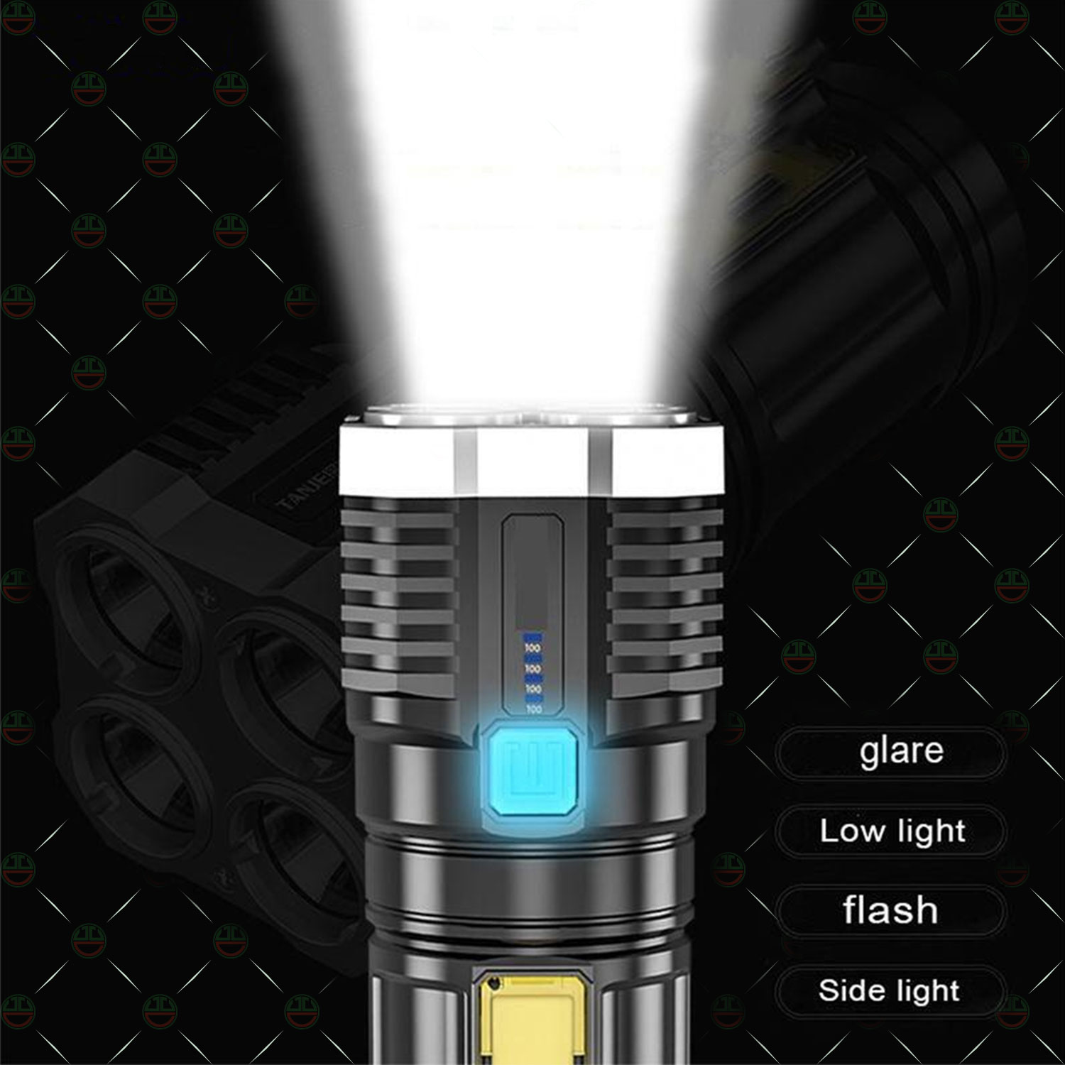 ✨[Loại Chuẩn] Đèn Pin Cầm Tay KhoNCC Hàng Chính Hãng Chiếu Xa Cực Sáng 4 Bóng 4 Chế Độ Sạc Tích Điện, Đèn Pin Led, Kiểm Tra Nhà - Sân Vườn Buổi Tối - KLVQ-1199-4LSDN