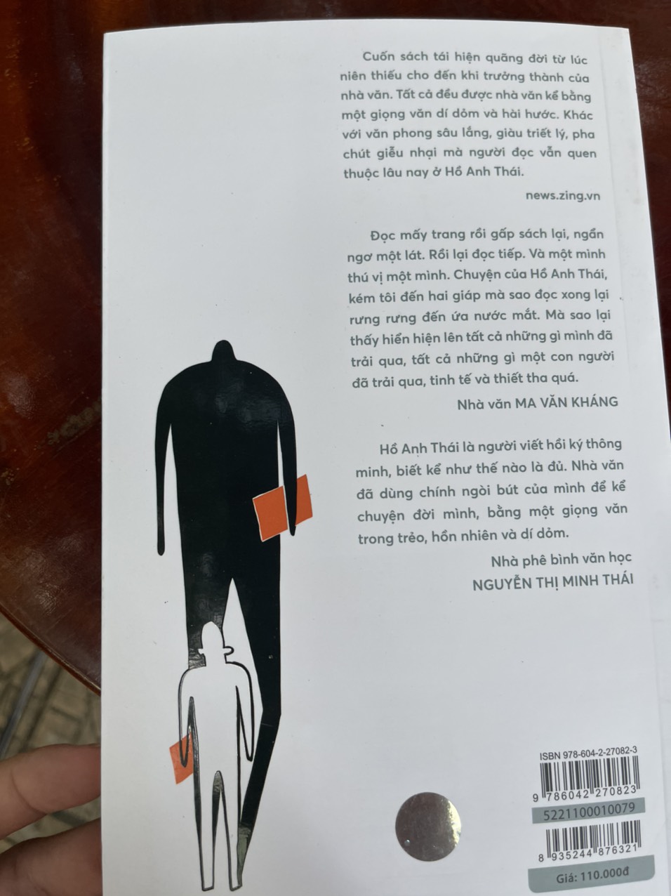 “Hồ Anh Thái là người viết hồi ký thông minh, biết kể như thế nào là đủ. Nhà văn đã dùng chính ngòi bút của mình để kể chuyện đời mình, bằng một giọng văn trong trẻo, hồn nhiên và dí dỏm.” Nhà phê bình văn học NGUYỄN THỊ MINH THÁI
