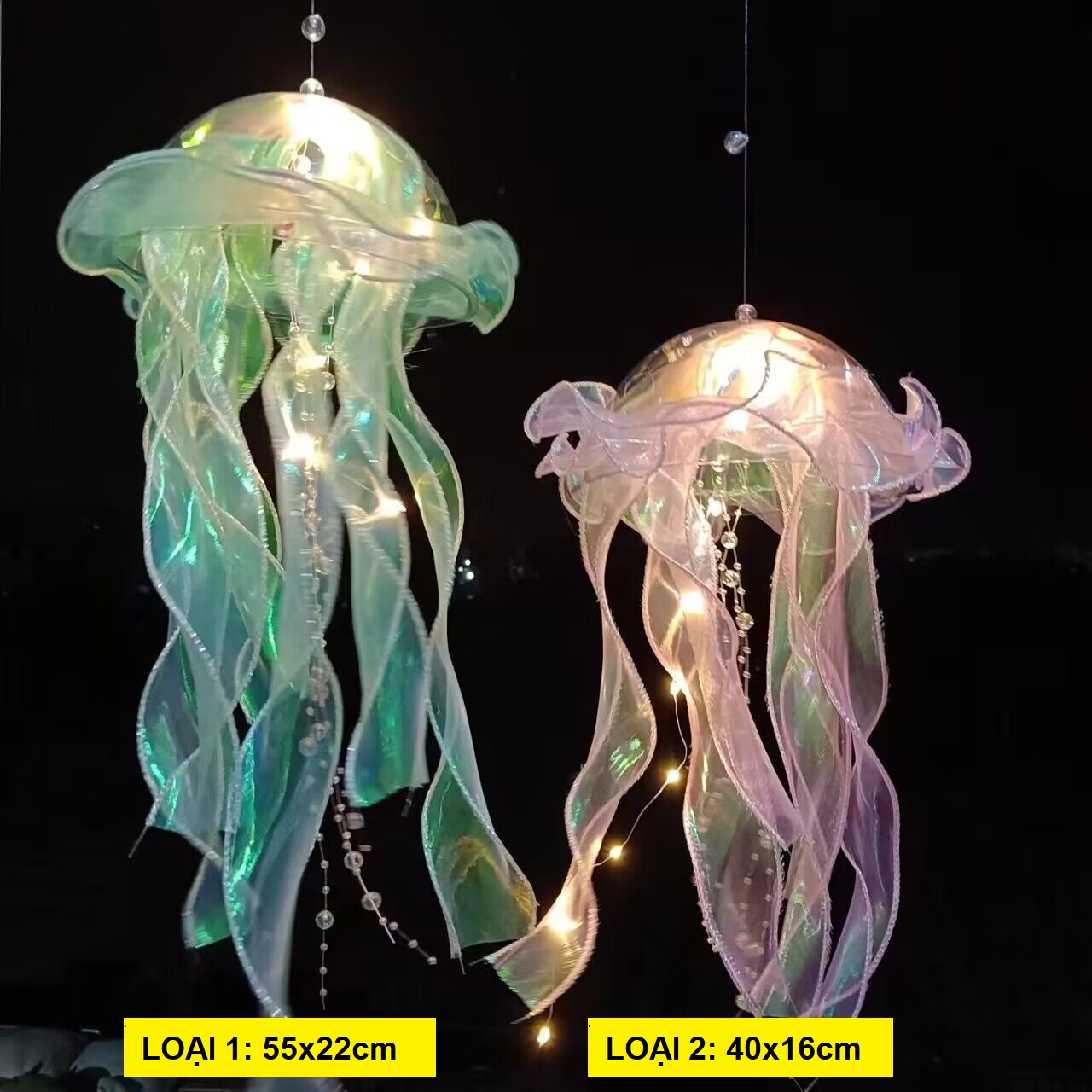 - Lưu ý: Lồng đèn sứa bên shop là loại lắp sẵn đèn + pin (Trên thị trường có loại mua về phải tự lắp)