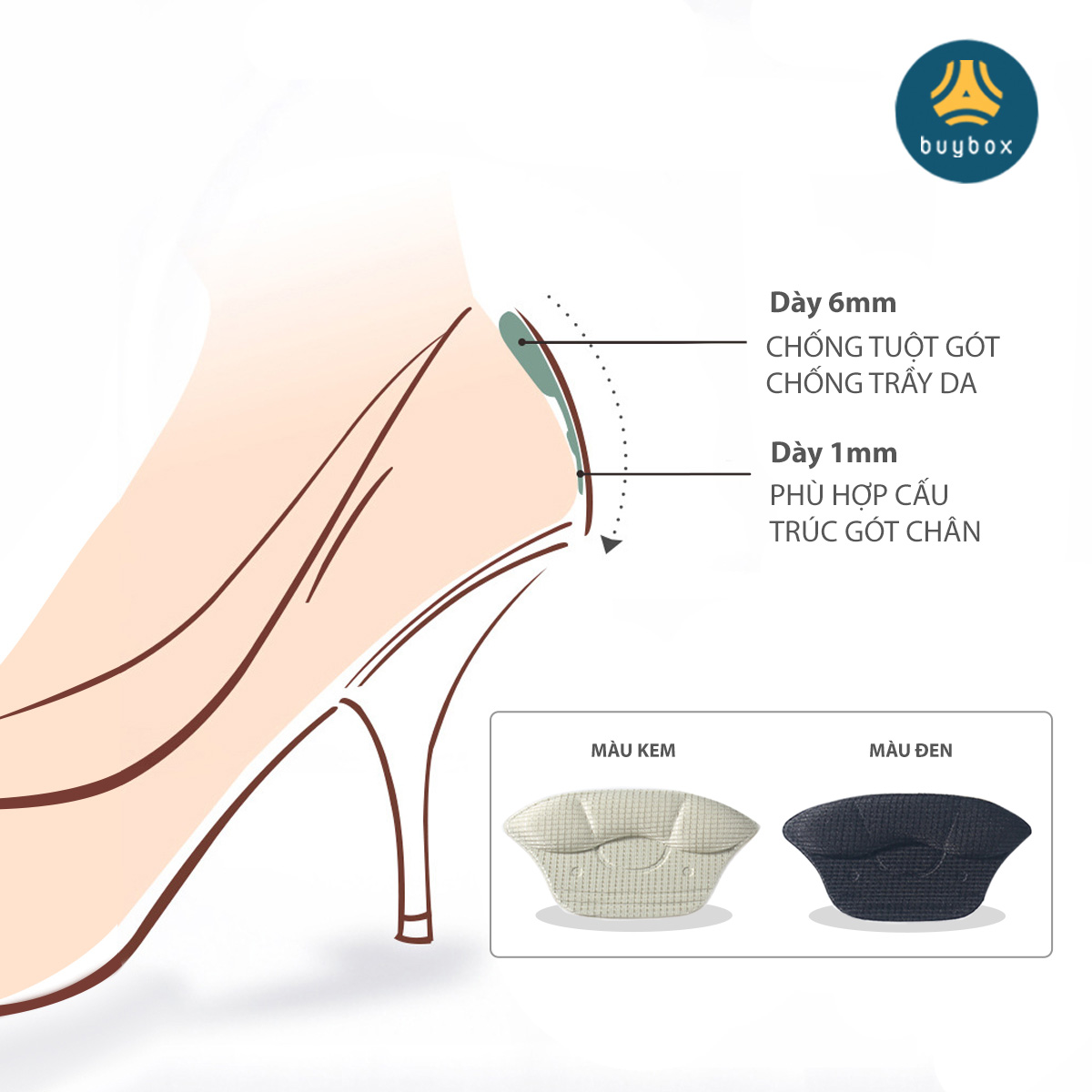 ✨Lót giày bảo vệ gót sau dày 6mm giảm size giày, chất liệu cao cấp giúp êm chân - buybox - BBPK230