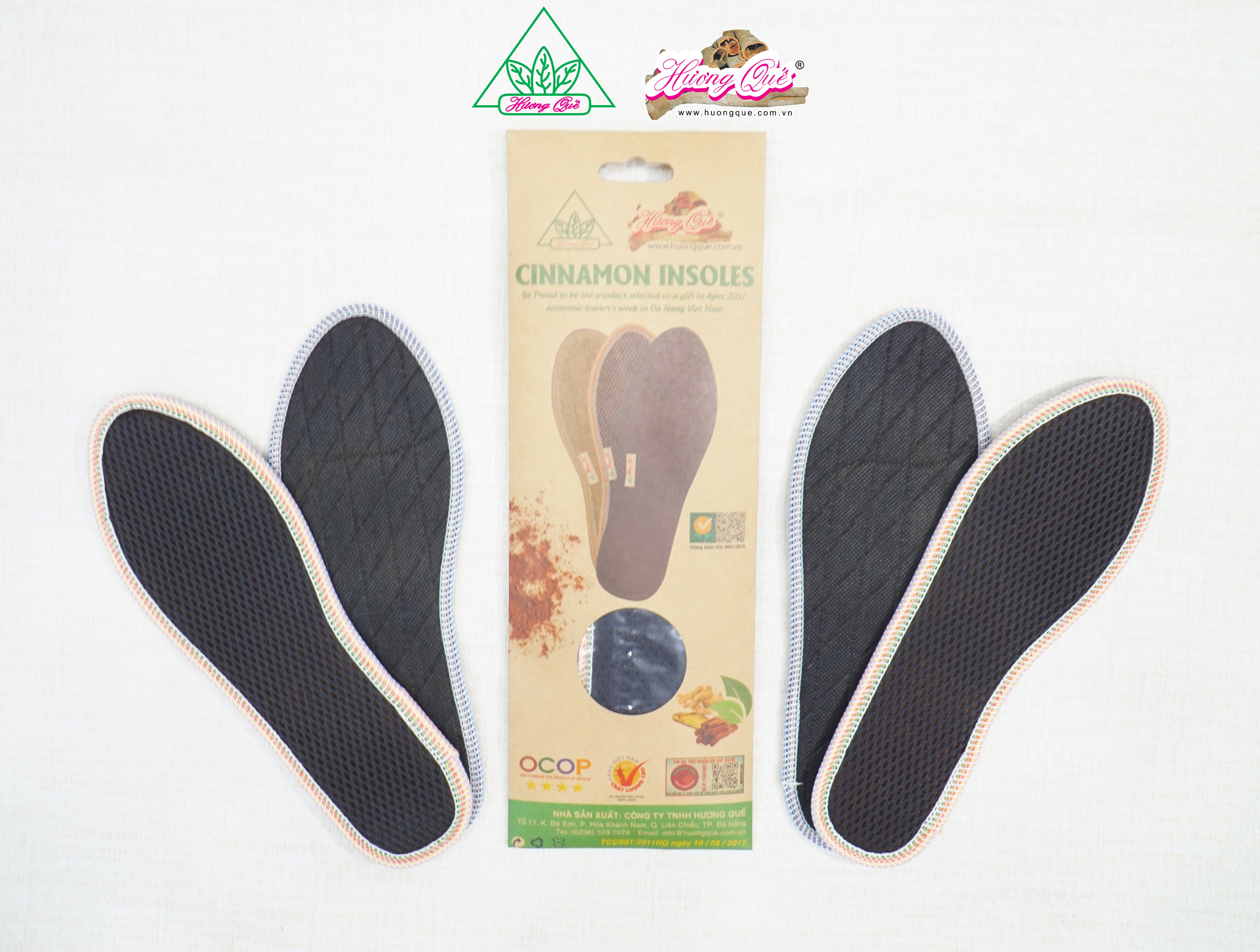 - Lót giày vải Hương Quế có thành phần từ cây Quế Trà My - Quảng Nam (là một trong bốn thảo dược quý Sâm - Nhung - Quế - Phụ) có chất lượng