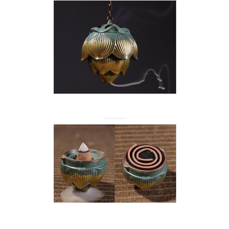 Lư Xông Trầm Hương - Giá Treo Trầm Hương - Lá Sen Gốm Sứ