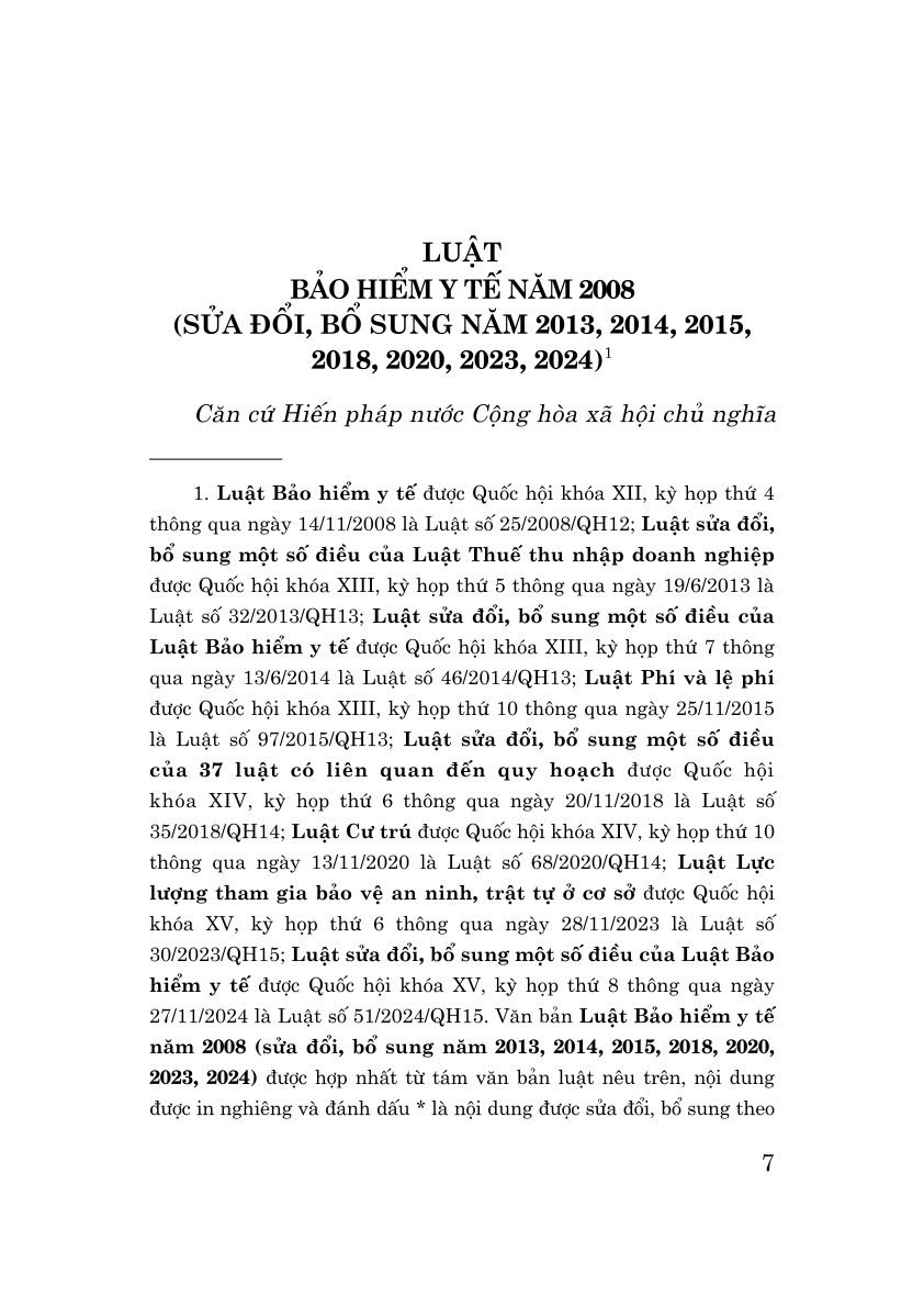 ✨Luật Bảo hiểm y tế năm 2008 (sửa đổi, bổ sung năm 2013, 2014, 2015, 2018, 2020, 2023, 2024)