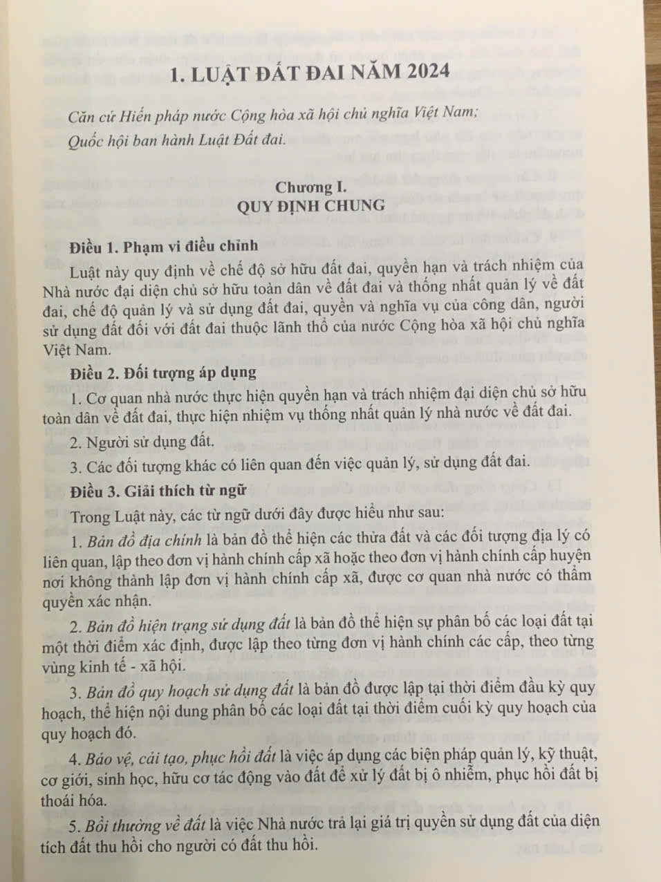 Ngày 18/01/2024, Quốc hội nước Cộng hòa xã hội chủ nghĩa Việt Nam thông qua Luật Đất đai số 31/2024/QH15, đã thể chế hóa đầy đủ, kịp thời các quan điểm, chủ trương của Đảng