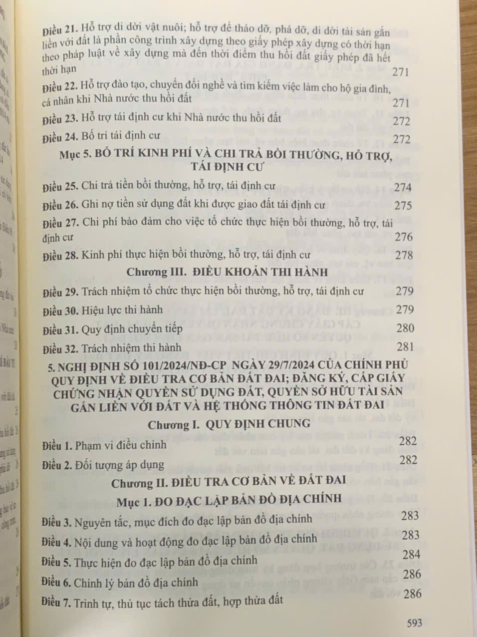 - Nghị định số 101/2024/NĐ-CP ngày 29 tháng 7 năm 2024 của Chính phủ quy định về điều tra cơ bản đất đai; đăng ký, cấp Giấy chứng nhận quyền sử dụng đất, quyền sở hữu tài sản gắn liền với đất và Hệ thống thông tin đất đai