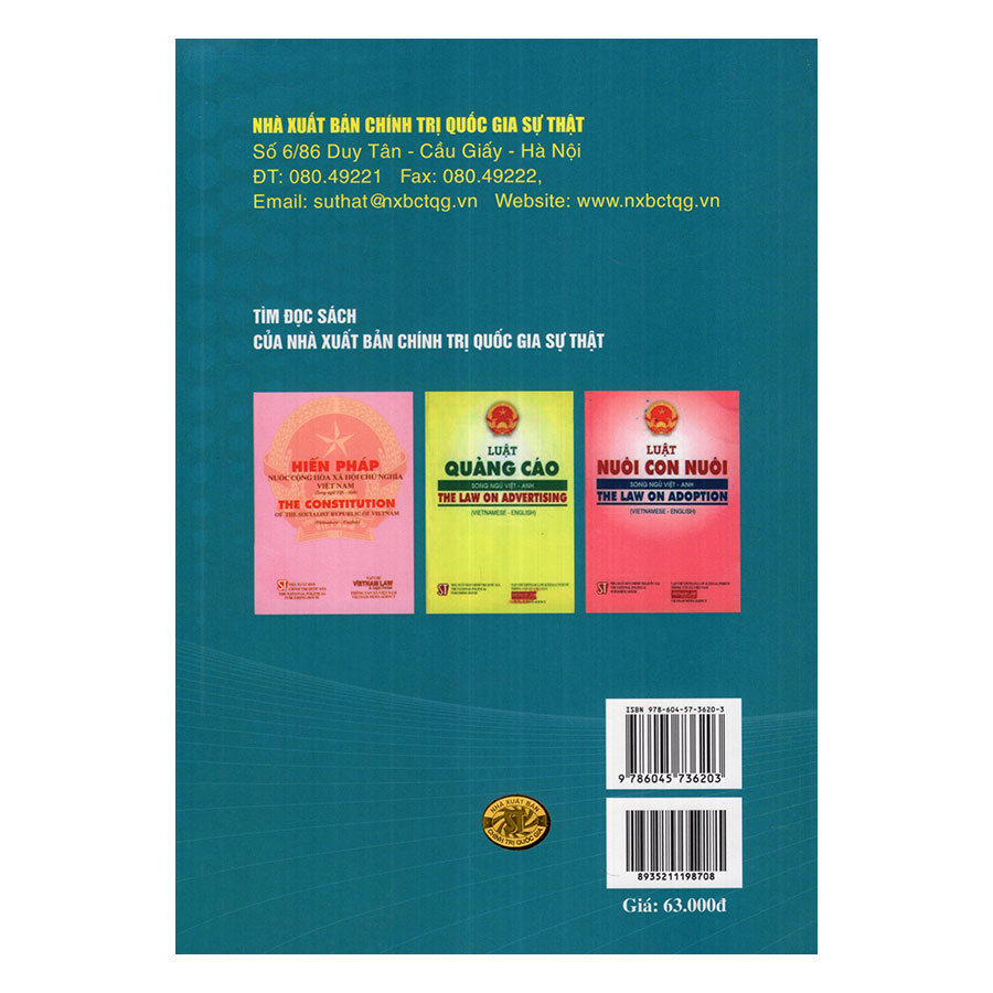 Cuốn sách ra đời nhằm tạo điều kiện thuận tiện cho bạn đọc trong việc tra cứu và áp dụng Pháp luật. Nội dung cuốn sách và văn bản luật được nhất thể hóa từ ba văn bản luật. Bản Tiếng Anh chỉ có giá trị tham khảo.