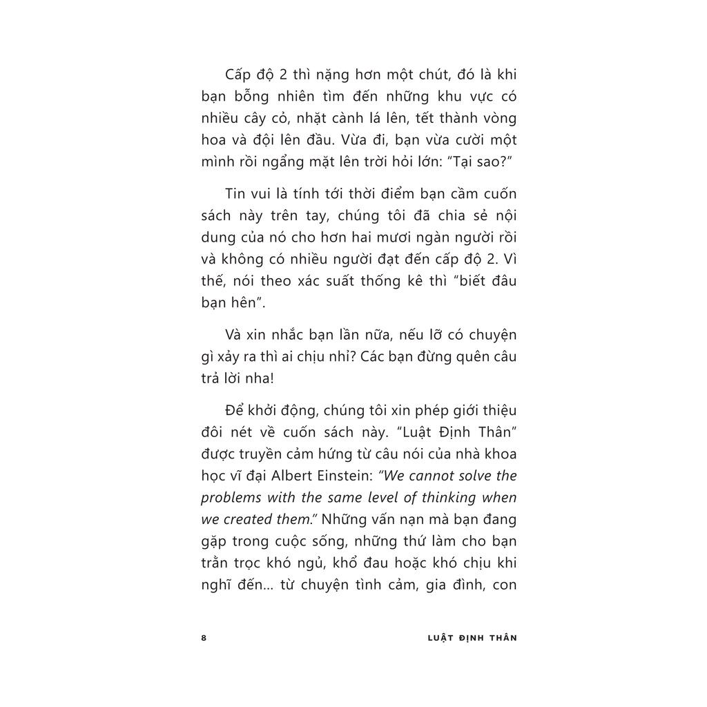 Cuốn sách “Luật định thân - Ngày hôm nay tôi sinh ra lần nữa” sẽ giải đáp cho bạn câu hỏi lớn trong phạm trù triết học đó. Những nghiên cứu, kiến thức về não bộ, khoa học thần kinh, tâm lý học và sinh học được tiếp cận một cách đơn giản, gần gũi trong cuốn sách, sẽ giúp bạn:
