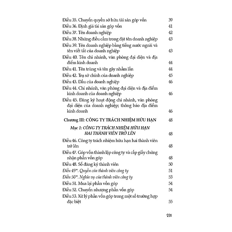 Luật Doanh nghiệp (hiện hành) (sửa đổi, bổ sung năm 2022) gồm 10 chương, 218 điều, quy định về thành lập, tổ chức quản lý, tổ chức lại, giải thể và hoạt động có liên quan của doanh nghiệp, bao gồm công ty trách nhiệm hữu hạn, công ty cổ phần, công ty hợp danh và doanh nghiệp tư nhân; quy định về nhóm công ty. Luật Doanh nghiệp được Quốc hội khóa XIV kỳ họp thứ 9 thông qua ngày 17/6/2020, thay thế cho Luật Doanh nghiệp năm 2014.