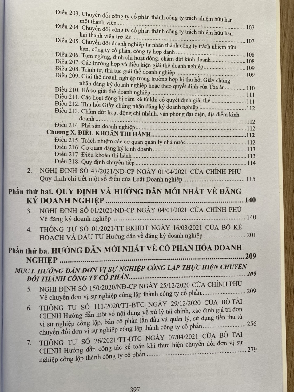 Cuốn sách được cập nhật đầy đủ các Nghị định và Thông tư mới nhất 2021 về hướng dẫn chi tiết thi hành Luật Doanh nghiệp,  đăng ký doanh nghiệp, chuyển đổi cổ phần hóa doanh nghiệp… Nhằm giúp bạn đọc, doanh nghiệp thông tin kịp thời, đầy đủ và hướng dẫn tra cứu áp dụng văn bản pháp luật một cách hiệu quả. Nhà xuất bản Lao Động cho phát hành cuốn sách  LUẬT DOANH NGHIỆP VÀ VĂN BẢN HƯỚNG DẪN THI HÀNH  ( Cập Nhật Các Văn Bản Mới Nhất Năm 2021 ) Nội dung cuốn sách bao gồm các phần như sau: PHẦN I. LUẬT DOANH NGHIỆP VÀ VĂN BẢN HƯỚNG DẪN THI HÀNH         LUẬT DOANH NGHIỆP số: 59/2020/QH14 ngày 17 tháng 6 năm 2020  ( có hiệu lực thi hành từ ngày 01 tháng 01 năm 2021)           NGHỊ ĐỊNH SỐ 47/2021/NĐ-CP NGÀY 01THÁNG 04 NĂM 2021 CỦA CHÍNH PHỦ Quy định chi tiết một số điều của Luật Doanh nghiệp PHẦN II. QUY ĐỊNH MỚI NHẤT VỀ ĐĂNG KÝ DOANH NGHIỆP. PHẦN III.  HƯỚNG DẪN MỚI NHẤT VỀ CỔ PHẦN HÓA DOANH NGHIỆP.