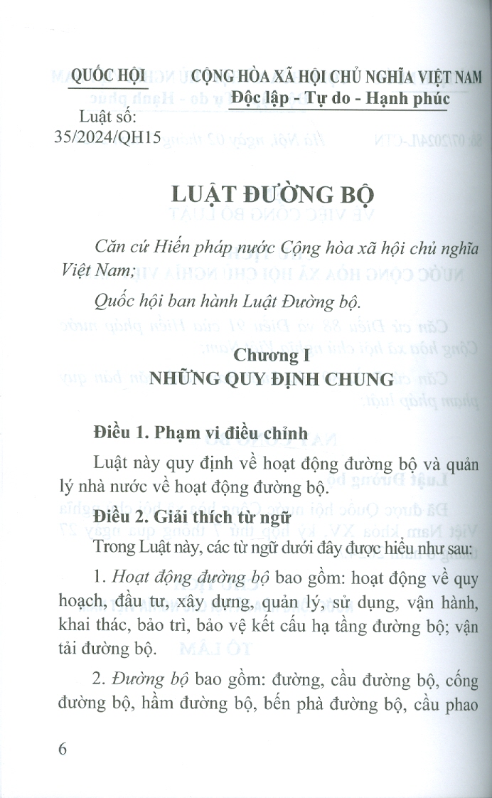 Ngày 27/6/2024, tại kỳ họp thứ 7, Quốc hội khóa XV đã thông qua Luật Trật tự, an toàn giao thông đường bộ thay thế Luật Giao thông đường bộ năm 2008 (sửa đổi, bổ