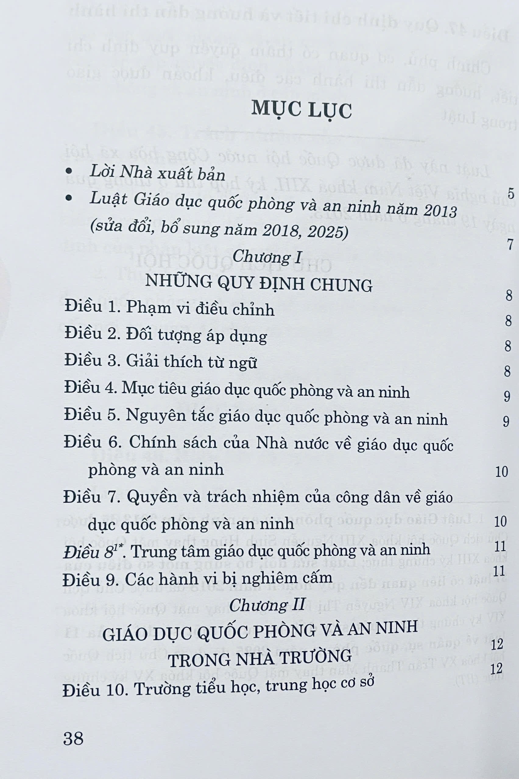 Luật Giáo dục quốc phòng và an ninh năm 2013 (sửa đổi, bổ sung năm 2018, 2025) do Nhà xuất bản Chính trị quốc gia Sự thật phát hành là tài liệu pháp lý quan