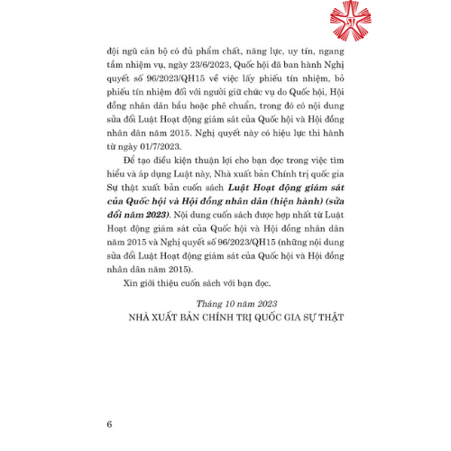 ✨Luật Hoạt động giám sát của Quốc hội và Hội đồng nhân dân (hiện hành) (sửa đổi năm 2023) (bản in 2023)