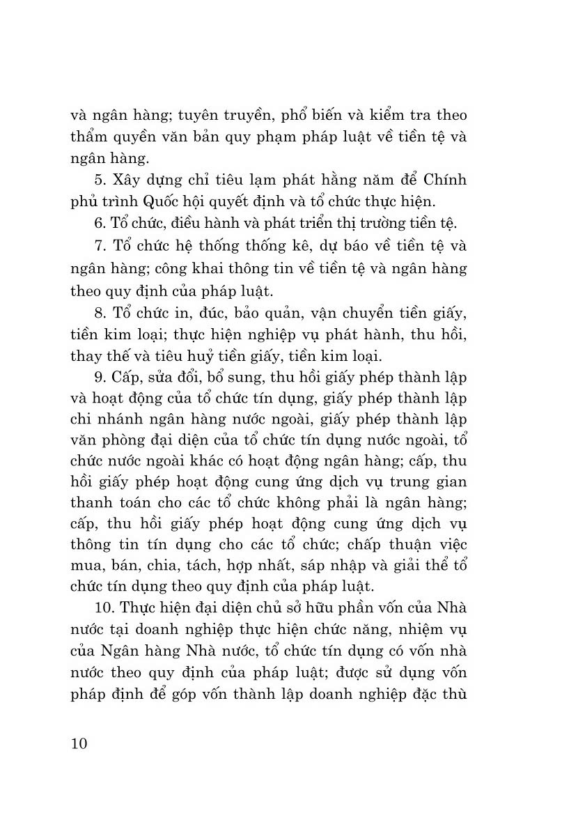 Luật Ngân hàng Nhà nước Việt Nam được Quốc hội khóa XII, kỳ họp thứ 7 thông qua ngày 16/6/2010, có hiệu lực thi hành từ ngày 01/01/2011, thay thế luật Ngân hàng Nhà nước năm 1997, sửa đổi, bổ sung năm 2003.