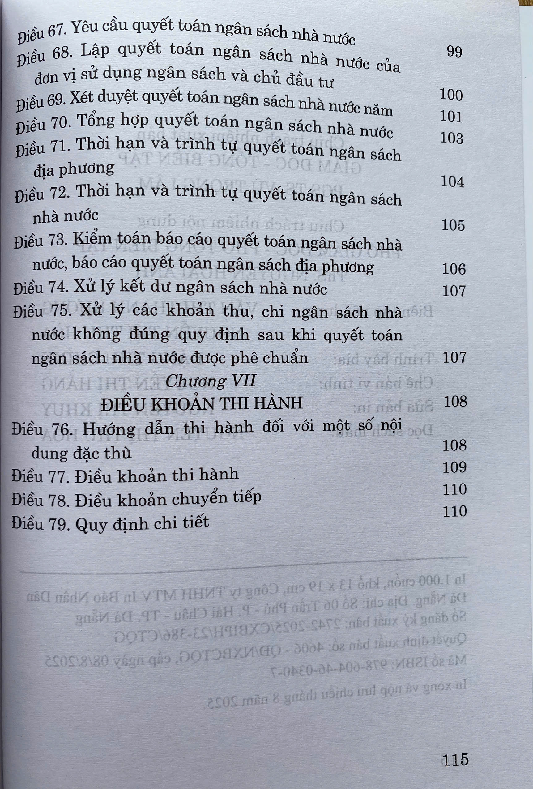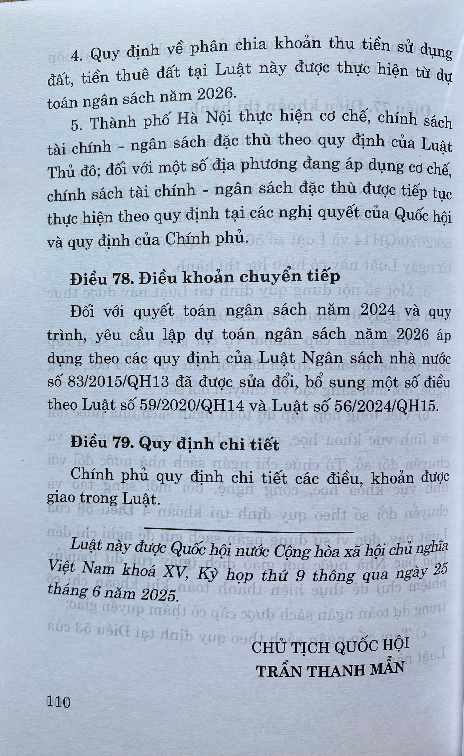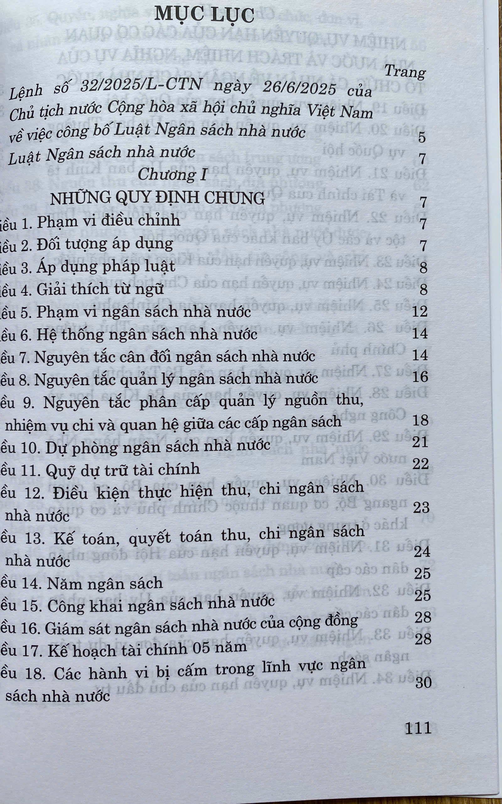 Luật Ngân Sách Nhà Nước số 89/2025/QH15 đã được Quốc Hội thông qua ngày 25-06-2025 . Luật gồm có 7 chương, 79 điều.