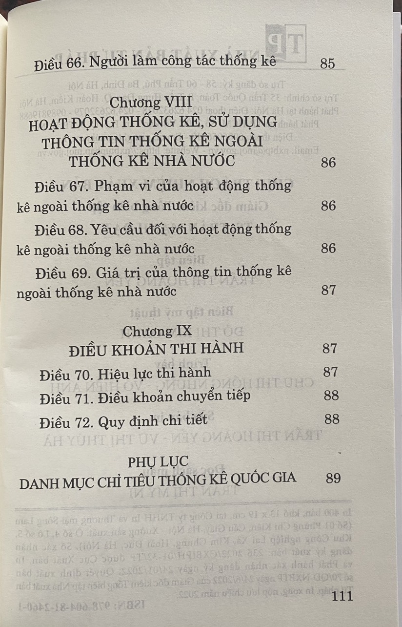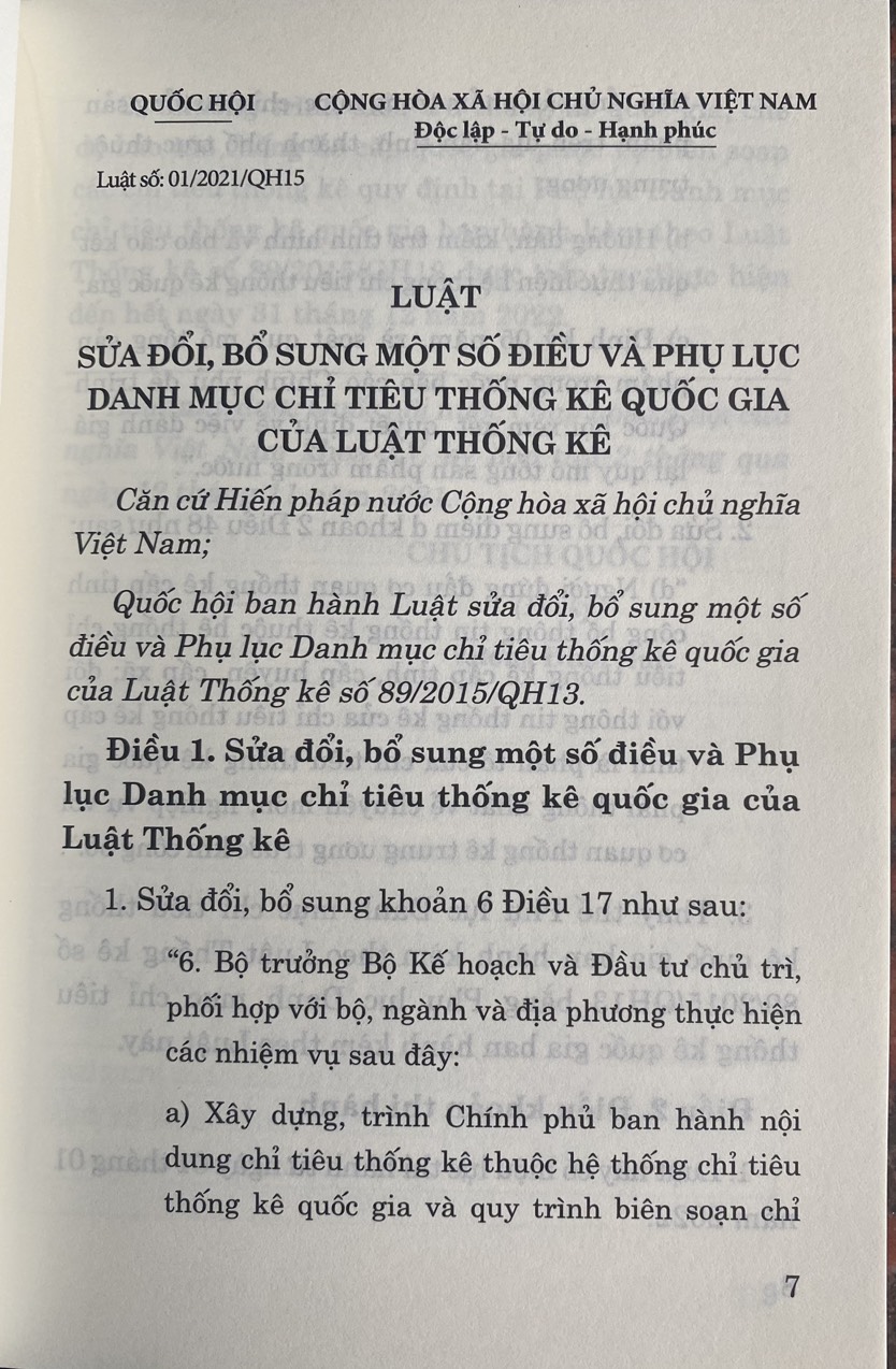 Mua tại TiktokLuật Thống Kê Năm 2015 ( Sửa đổi, bổ sung năm 2021 ) Ban hành theo Luật số 01/2021/ QH 15. Luật gồm có 9 chương và 72 điều