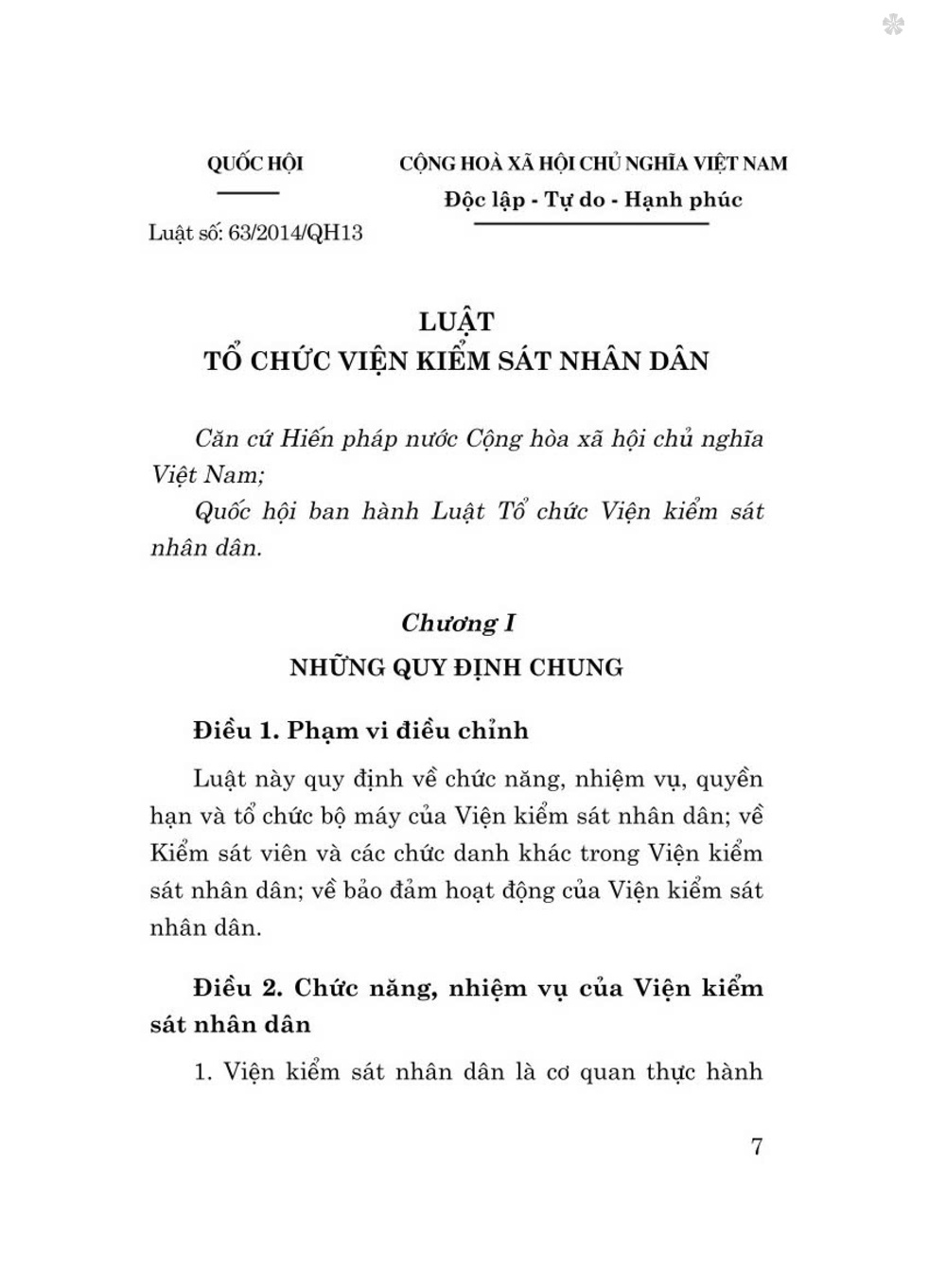 ✨Luật tổ chức Viện kiểm sát nhân dân năm 2014 - bản in 2024