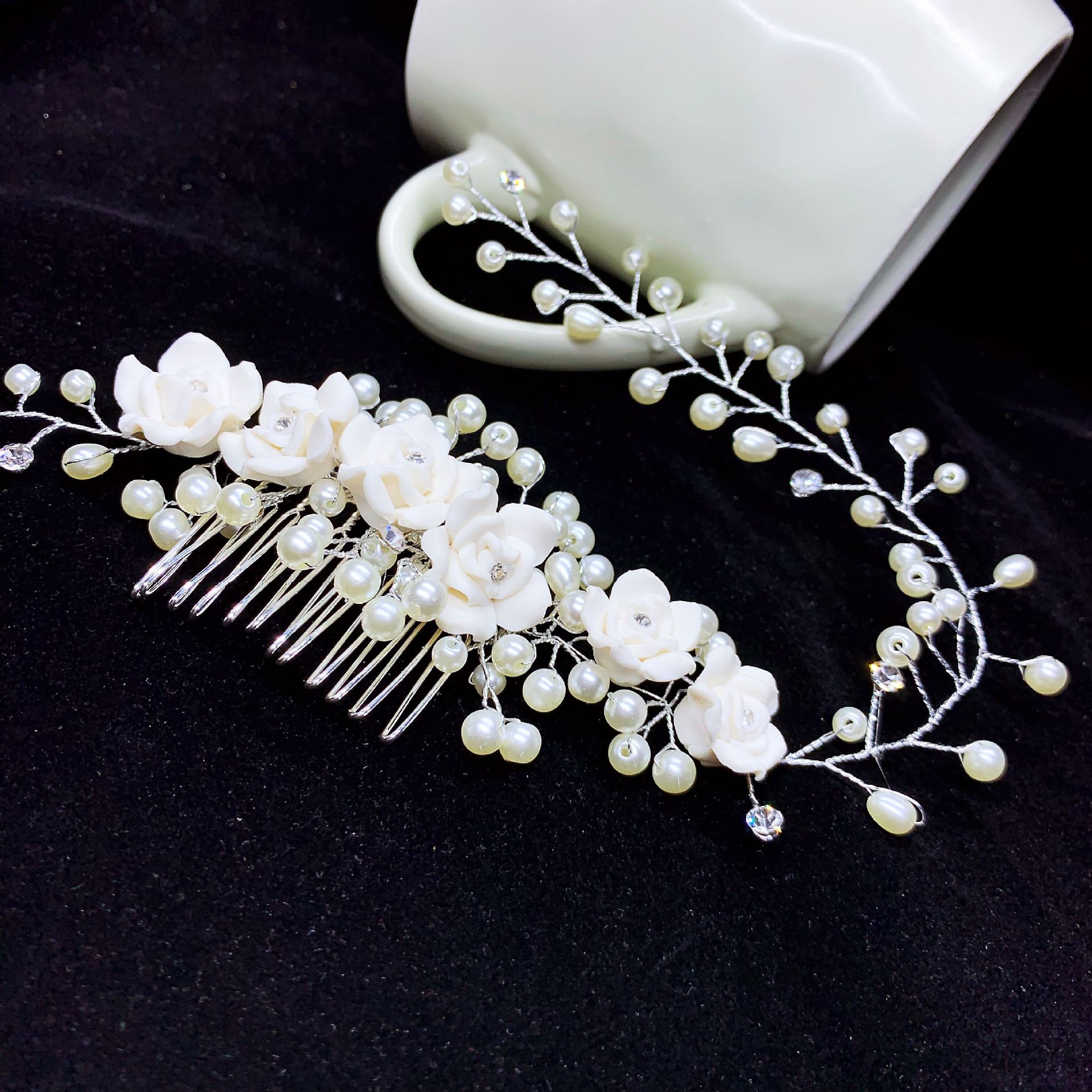 ✨Lược cài tóc hoa trắng trang điểm cô dâu, dạ tiệc