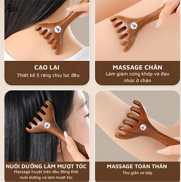 Chất liệu gỗ đàn hương, chắc chắn, an toàn cho da đầu.