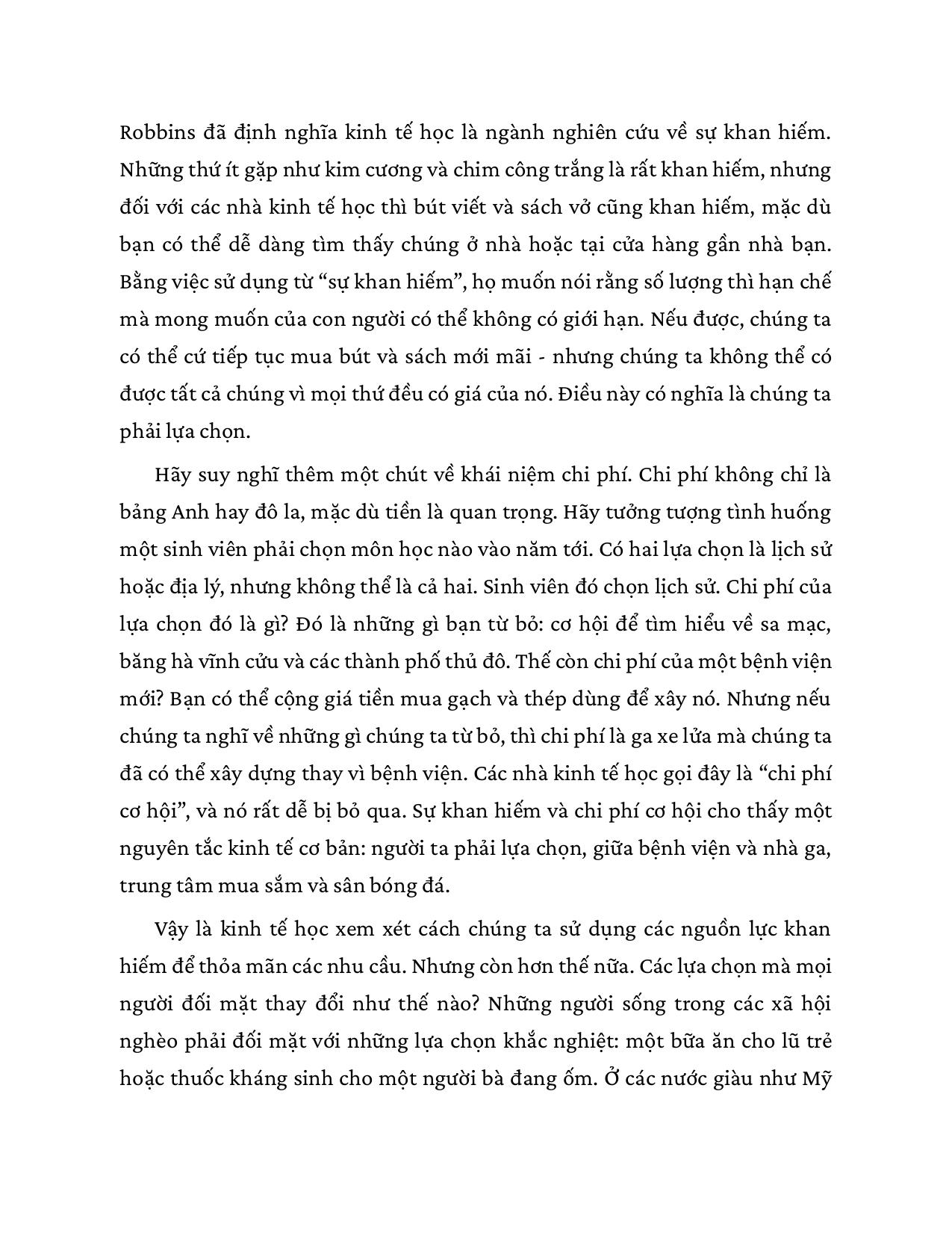 Đây chỉ là một ví dụ trong vô số bài toán kinh tế mà mỗi chúng ta phải giải hằng ngày. Như vậy, kinh tế học hóa ra không chỉ là một lĩnh vực tri thức cao siêu, xa vời dành riêng cho những nhà kinh tế học, chính khách hay doanh nhân, nó hiện diện trong mọi quyết định lớn nhỏ của đời sống. Nhận thức được tầm quan trọng của những hiểu biết kinh tế học căn bản đối với con người trong xã hội đương đại nhiều biến động khó lường, Niall Kishtainy đã trang bị cho độc giả đại chúng một “công cụ” sắc bén, hữu ích mà lại rất dễ dàng tiếp cận.