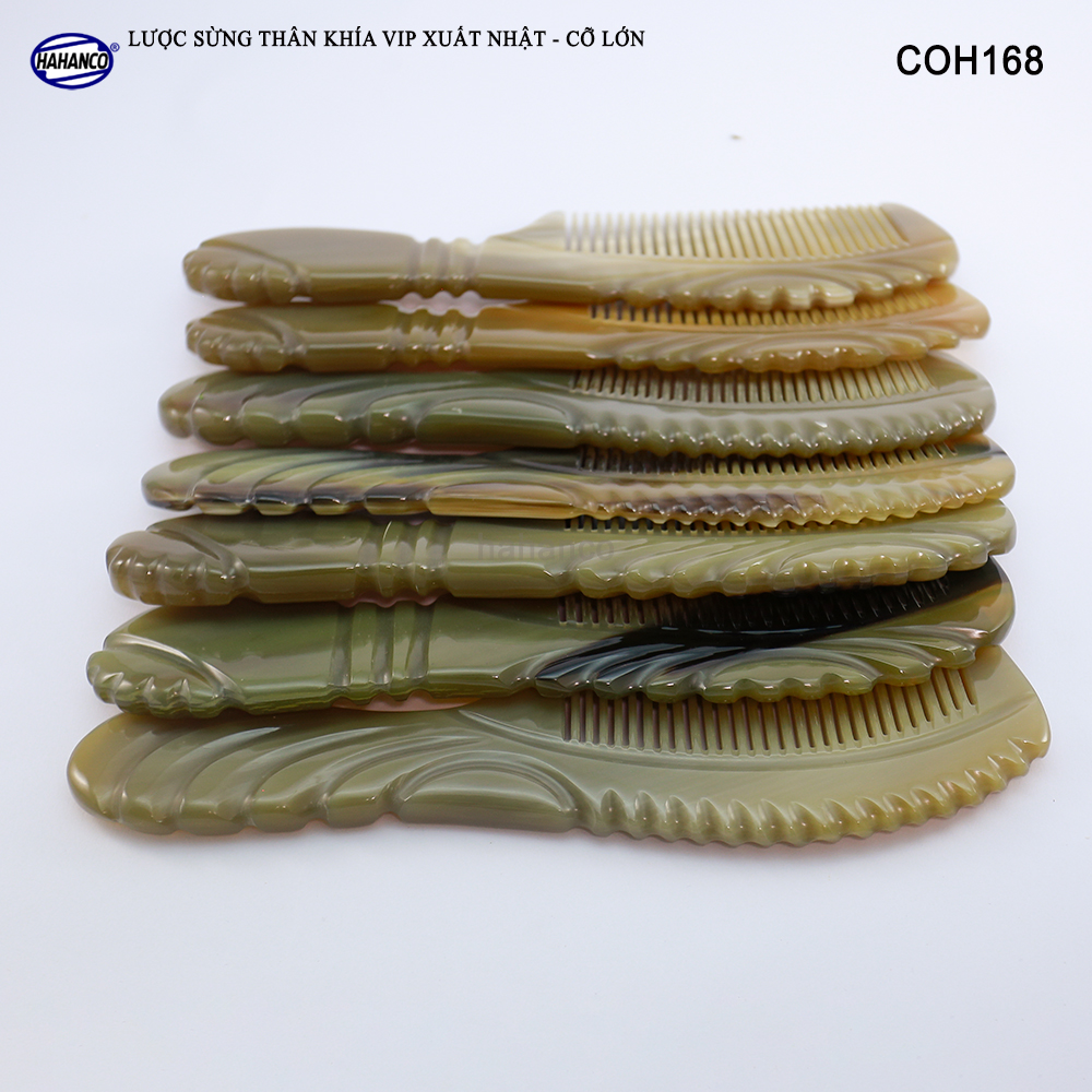 Mua tại TiktokLược sừng xuất khẩu sang thị trường Nhật Bản, EU, US. Đây là mẫu lược sừng VIP mẫu cổ điển có kích thước lớn nhất, cực đẹp, có thể để bàn trang điểm rất sang. Sản xuất với nhiều công đoạn phức tạp, Được các nghệ nhân của HAHANCO thổi hồn vào chiếc lược này, tạo ra các họa tiết và đường nét uốn lượn sắc sảo, làm cho chiếc lược cổ điển không còn nhàm chán mỗi khi bạn cầm trên tay. Những chiếc răng lược được các bàn tay khéo léo mài dũa từng chiếc một cẩn thận để đạt được độ nhẵn bóng, khi chải tóc sẽ không làm gãy và rụng tóc. Mô tả sản phẩm: