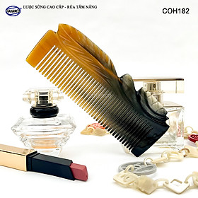 ✨Lược Sừng Màu Vân Nưa Bằng Đầu Rùa Tắm Nắng (Size: L - 15cm) Đục Khắc Tinh Xảo - có thể bỏ túi - COH182