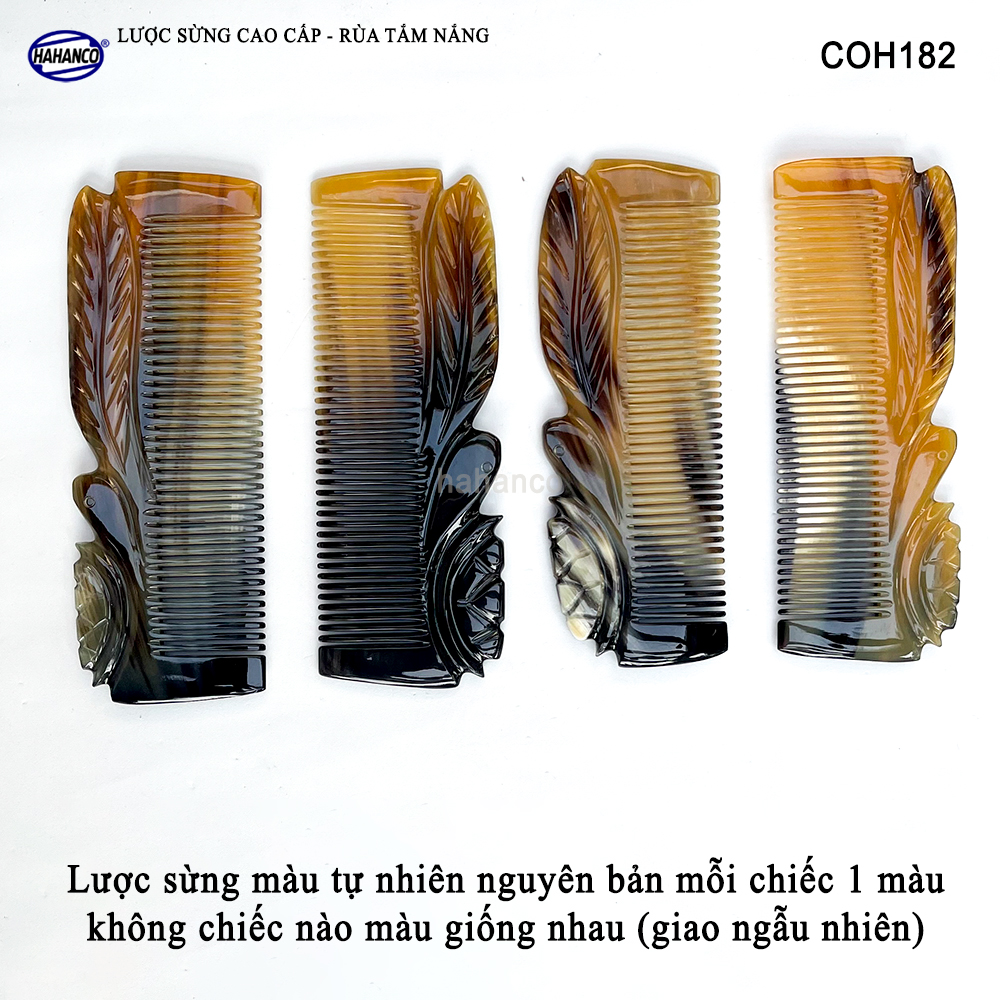 - Màu sắc: Đây là mẫu lược sừng có màu sắc tự nhiên đặc biệt, trên thân lược có nhiều màu khác nhau (Trắng + đen vân nưa màu sừng nguyên bản) mỗi chiếc 1 màu, không có chiếc nào giống nhau (giao ngẫu nhiên)