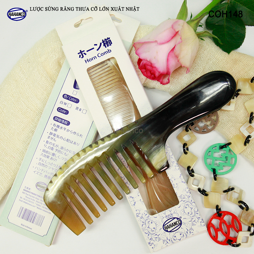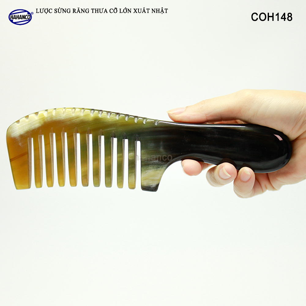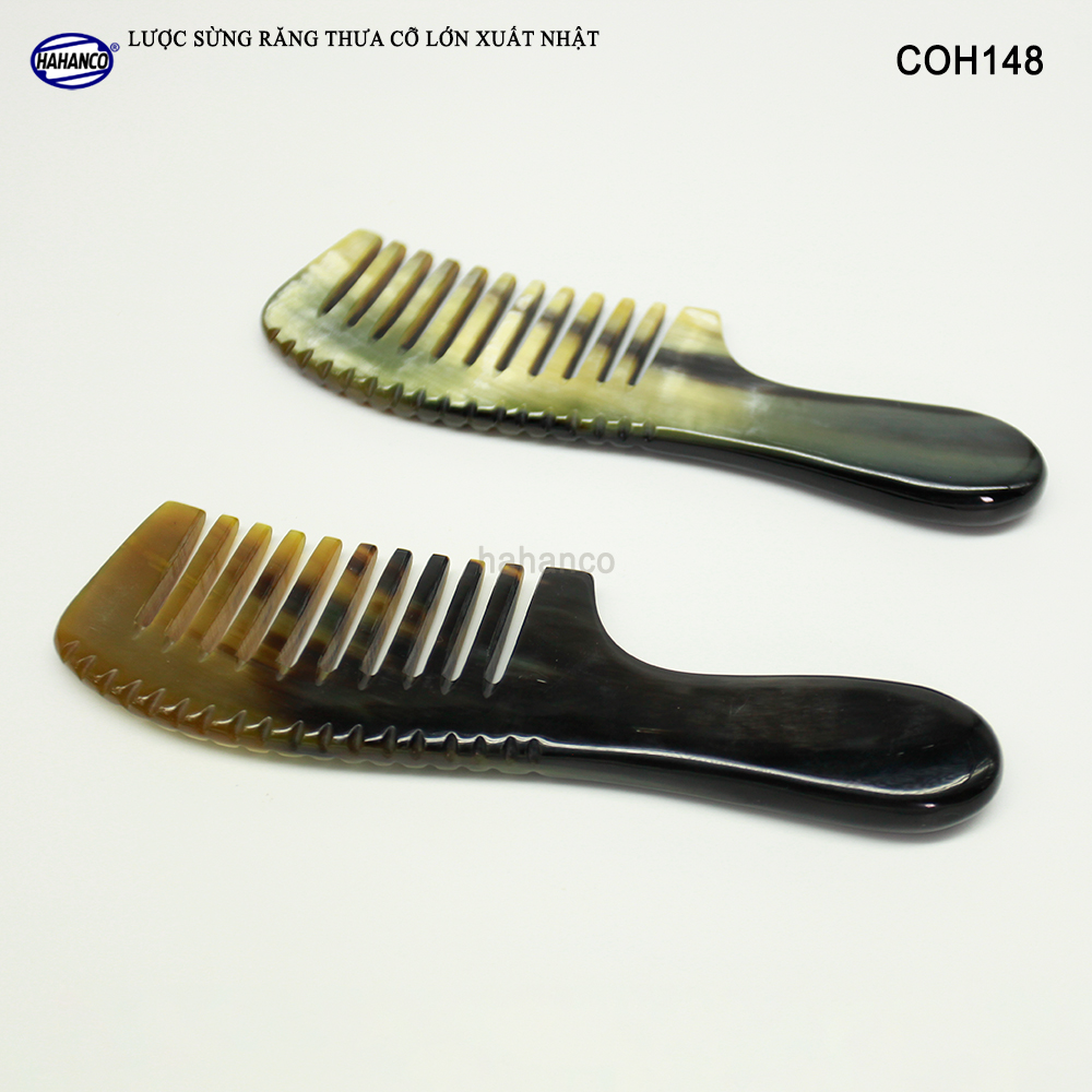 Lược sừng xuất khẩu sang thị trường Nhật Bản, EU, US. Đây là mẫu lược sừng cổ điển răng thưa, chuôi khía rất đẹp, có thể dùng cho tất cả các loại tóc, tóc xù,