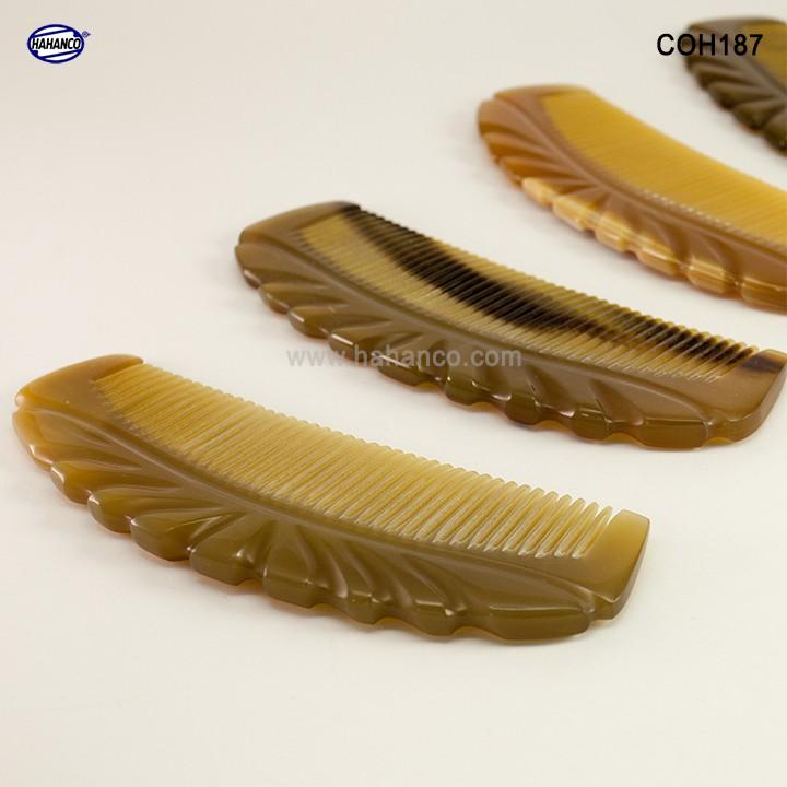 Lược sừng xuất khẩu sang thị trường Nhật Bản, EU, US. Đây là mẫu lược trơn chuôi lượn sóng, thiết kế với kiểu dáng nhẵn bóng trơn tru, với kích thước tỷ lệ được chia