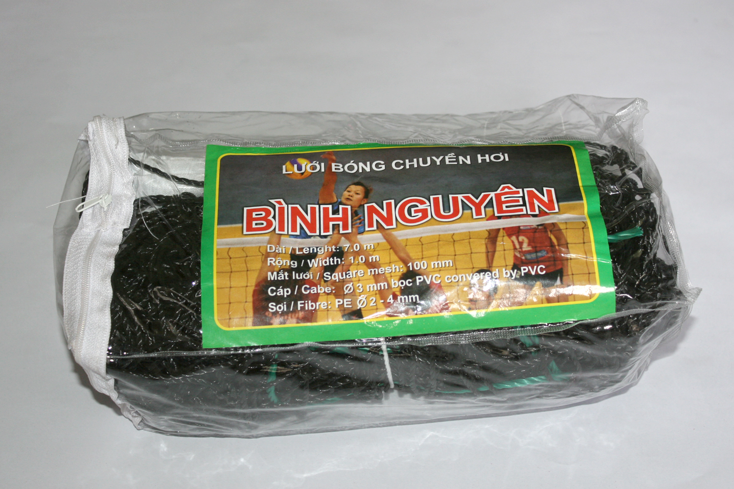 - Xuất xứ: Việt Nam. - Kích thước: 9,5 x 1 m (dài x rộng). - Mắt lưới: 100 mm. - Lưới bóng chuyền được làm từ sợi phi từ 2 – 2,5 mm. -