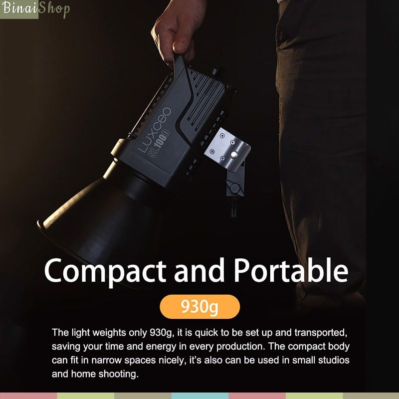 Luxceo SL100D được thiết kế để cho phòng chụp ảnh Studio chuyên nghiệp, live stream bán hàng với công suất lớn đáp ứng đầy đủ ánh sáng.