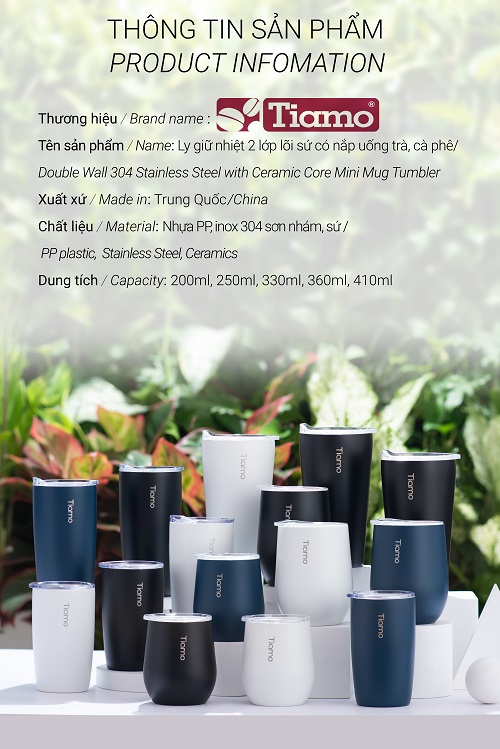 ✨Ly cà phê trà inox phủ sứ chân không Tiamo 250ml