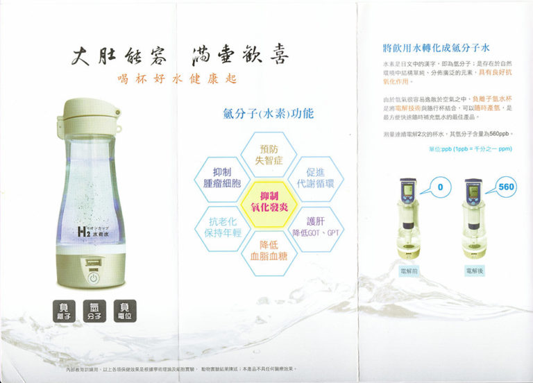 Nồng độ Hydro hòa tan: 1400ppb Vật liệu nắp: AS Vật liệu bình: ABS Kích thước: Chiều cao 16,4 cm× đường kính 7,5 cm. Phương pháp tạo: Phương pháp điện phân DC