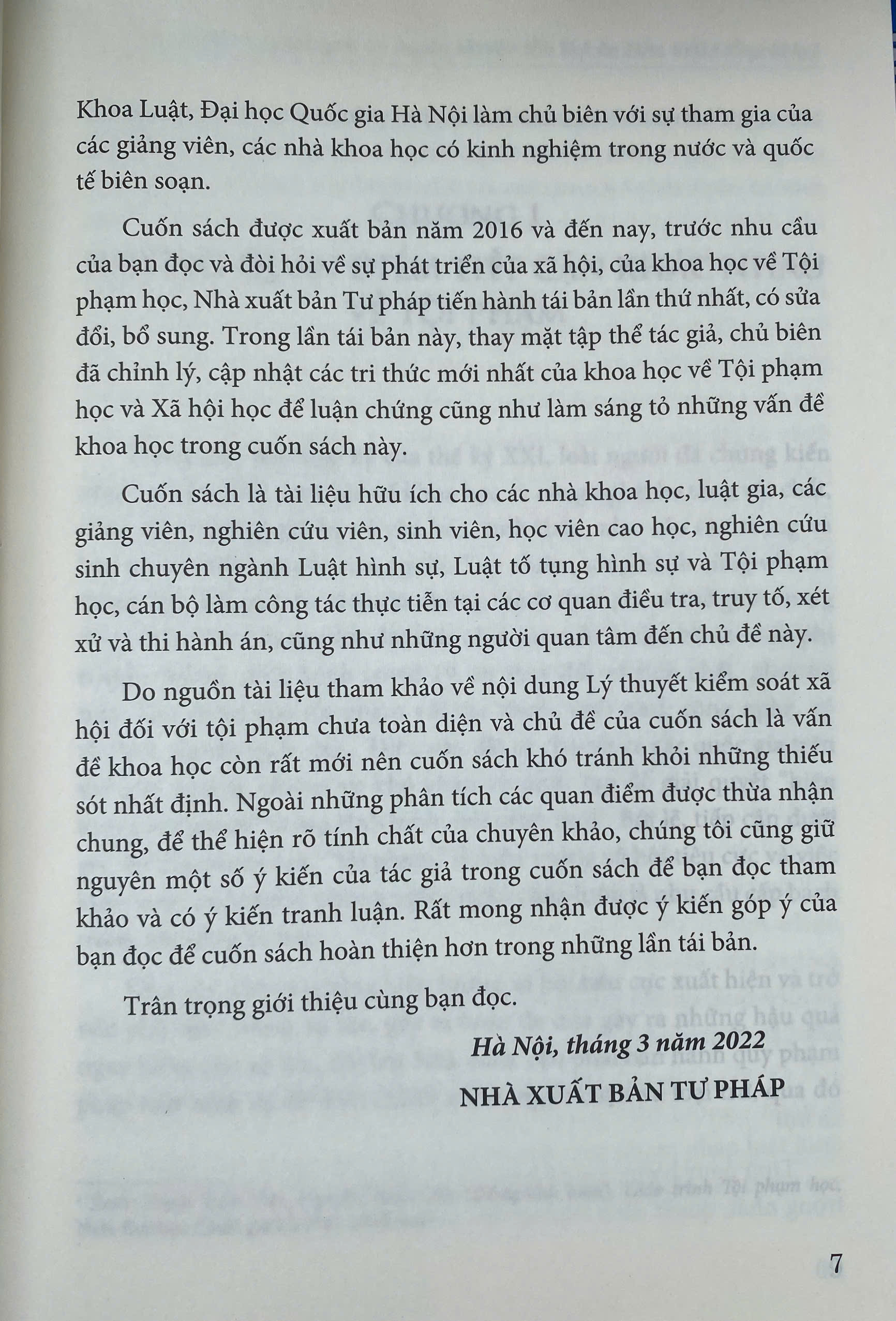 Chương 5: Tác giả giới thiệu hệ thống chủ thể, phương tiện, phương thức kiểm soát xã hội đối với tội phạm và thực tiễn ở Việt Nam.