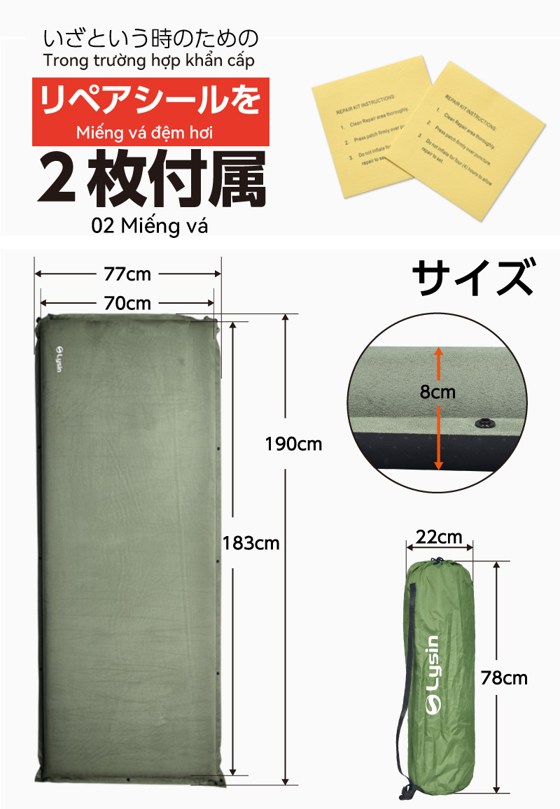 ✨Lysin - đệm nằm dã ngoại (roonjgcm dày 8cm, chất liệu da lộn) tự bơm hơi thoảng mái chống thấm nước cắm trại ngoài trời, picnic du lịch camping có thể liên kết với nhau