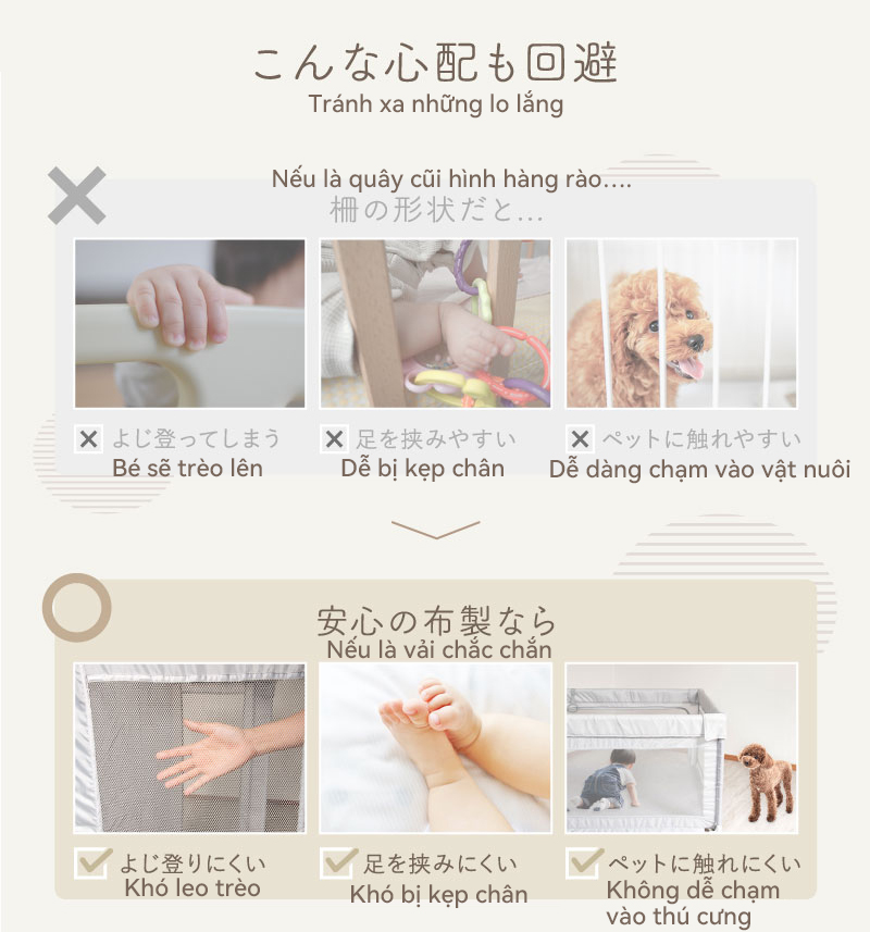 ✨Lysin - quây cũi bằng vải lưới thoáng khí trong nhà giúp bảo vệ bé yêu vui chơi an toàn cách ly với thú cưng phát triển ý thức tự lập giúp bé tập đứng dễ thu dọn đồ chơi cho bé.