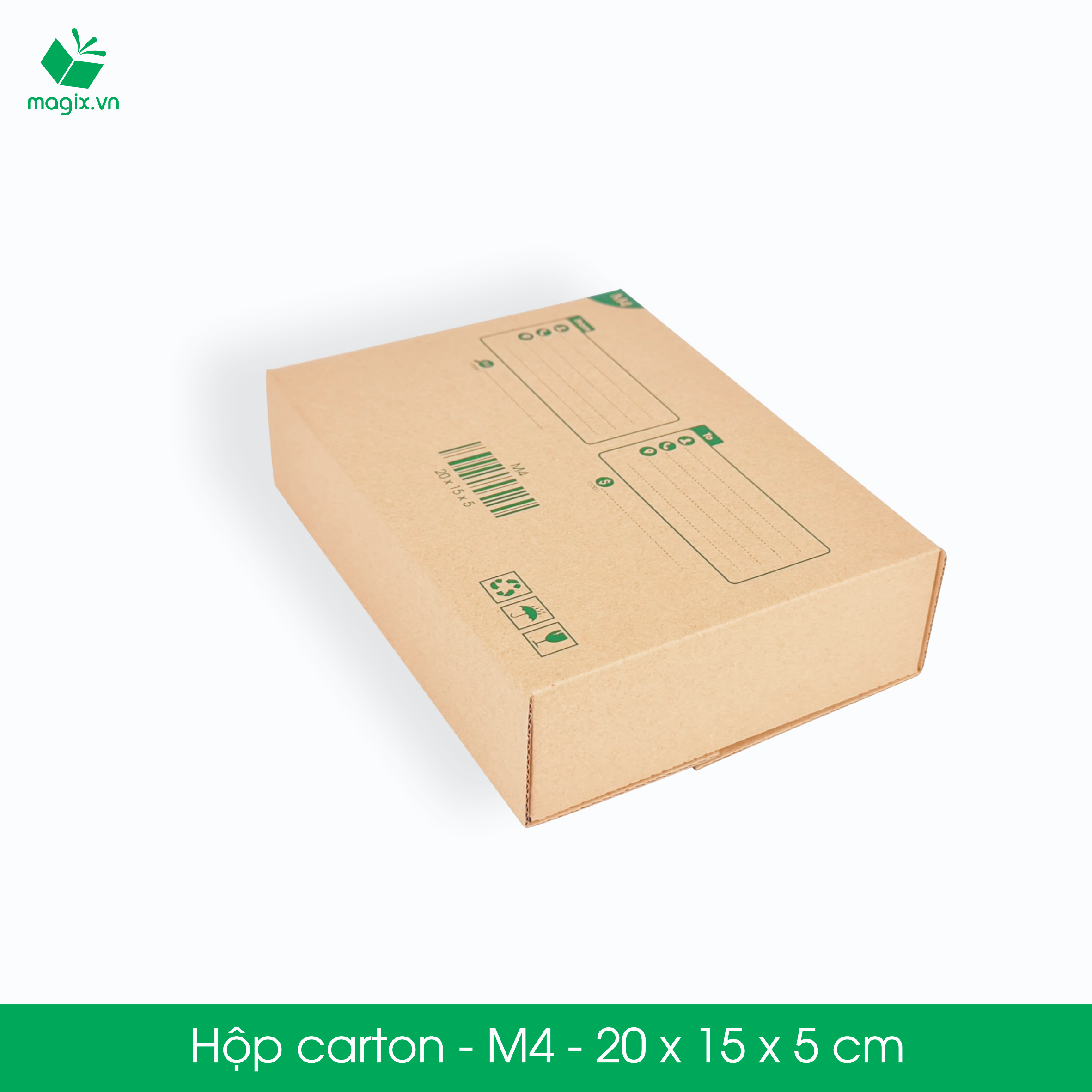 ---------------------QUY CHUẨN KĨ THUẬT---------------------------------------- Kích thước: 20x10x10 cm (kích thước phủ bì) Màu sắc: nâu nhạt Số lớp : 3 lớp - sóng E - dày 2mm (giúp tiết kiệm không gian lưu kho 50%