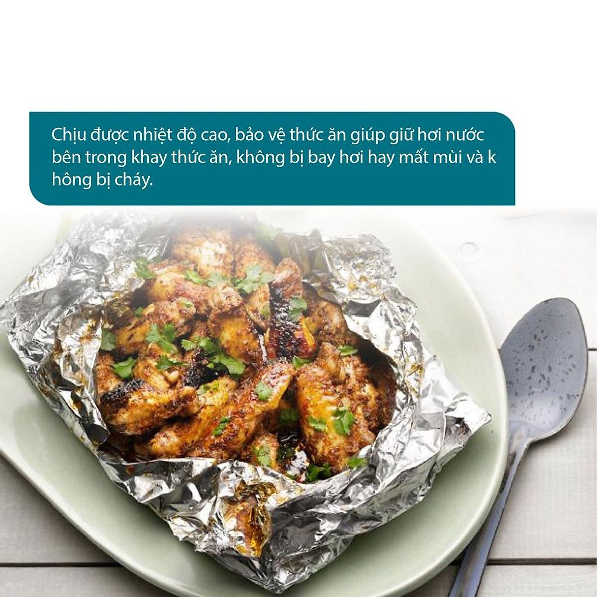 Là vật dụng hữu dụng khi bạn cần nướng thực phẩm. Với chất liệu nhôm lá mỏng có tính dẫn nhiệt cao, bạn có thể bọc thực phẩm khi nướng để làm thực phẩm chín nhanh, đều, giòn hơn, giữ nguyên hương vị thơm ngon và bảo đảm vệ sinh khi nướng. Khổ giấy đủ rộng để bọc thịt, cá, sườ khi nướng trên bếp than, bếp gas hay lò vi sóng.