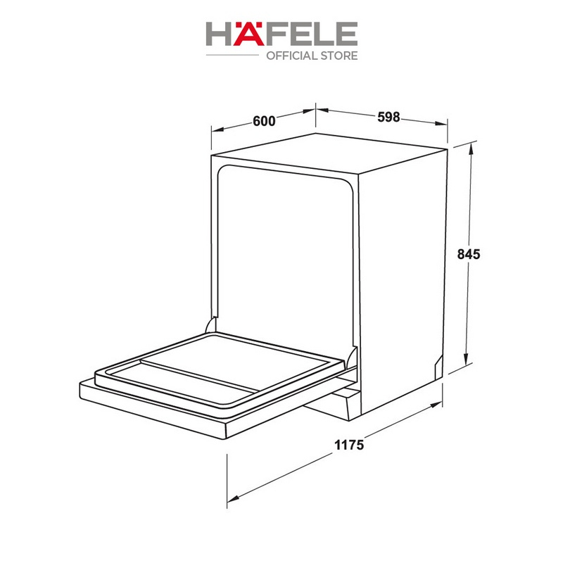 Máy rửa chén độc lập Hafele HDW F60C (533.23.200) rửa chén đĩa nhanh chóng với công suất 1900W, rửa được cùng lúc 3 - 4 bữa ăn Việt, tích hợp công nghệ rửa nước nóng loại