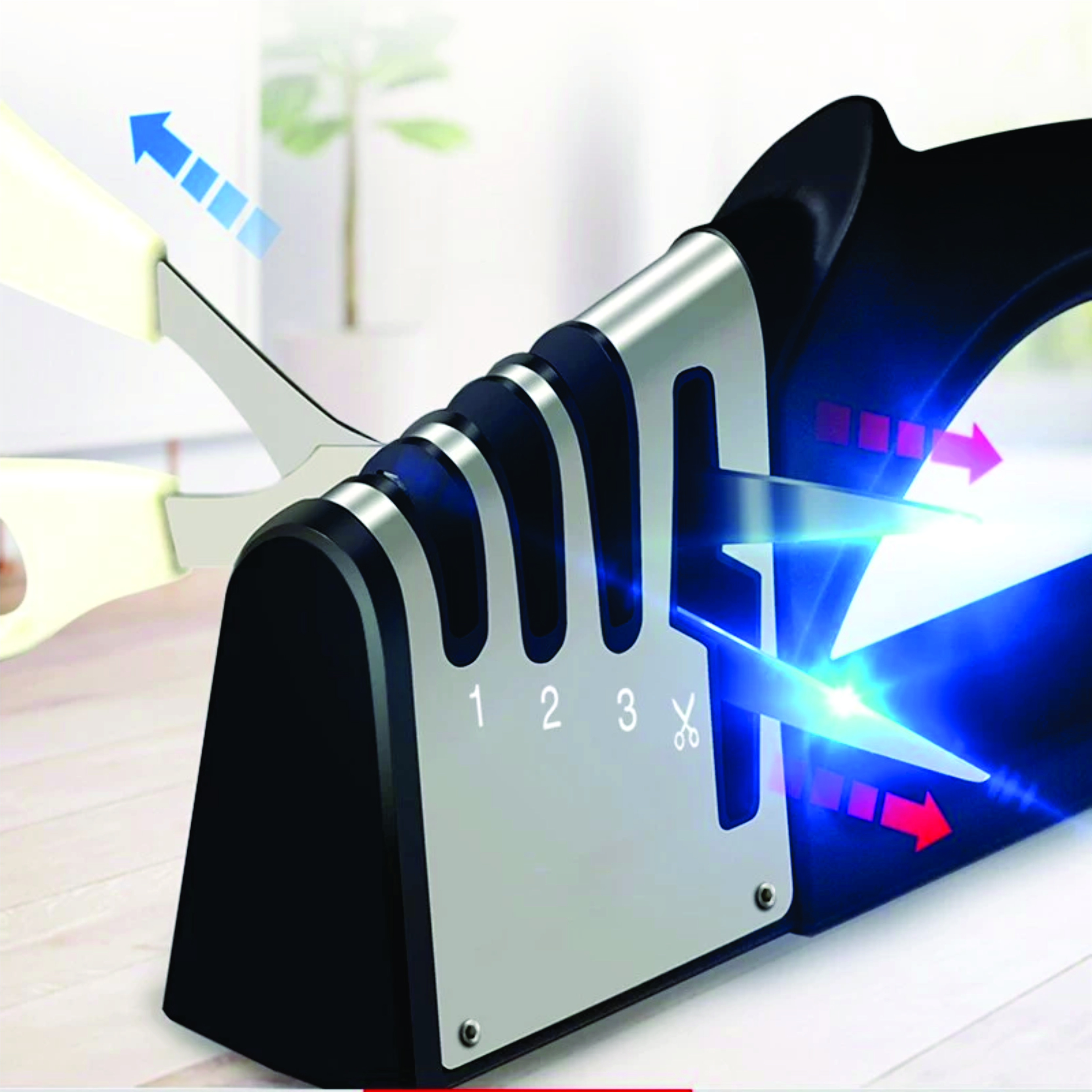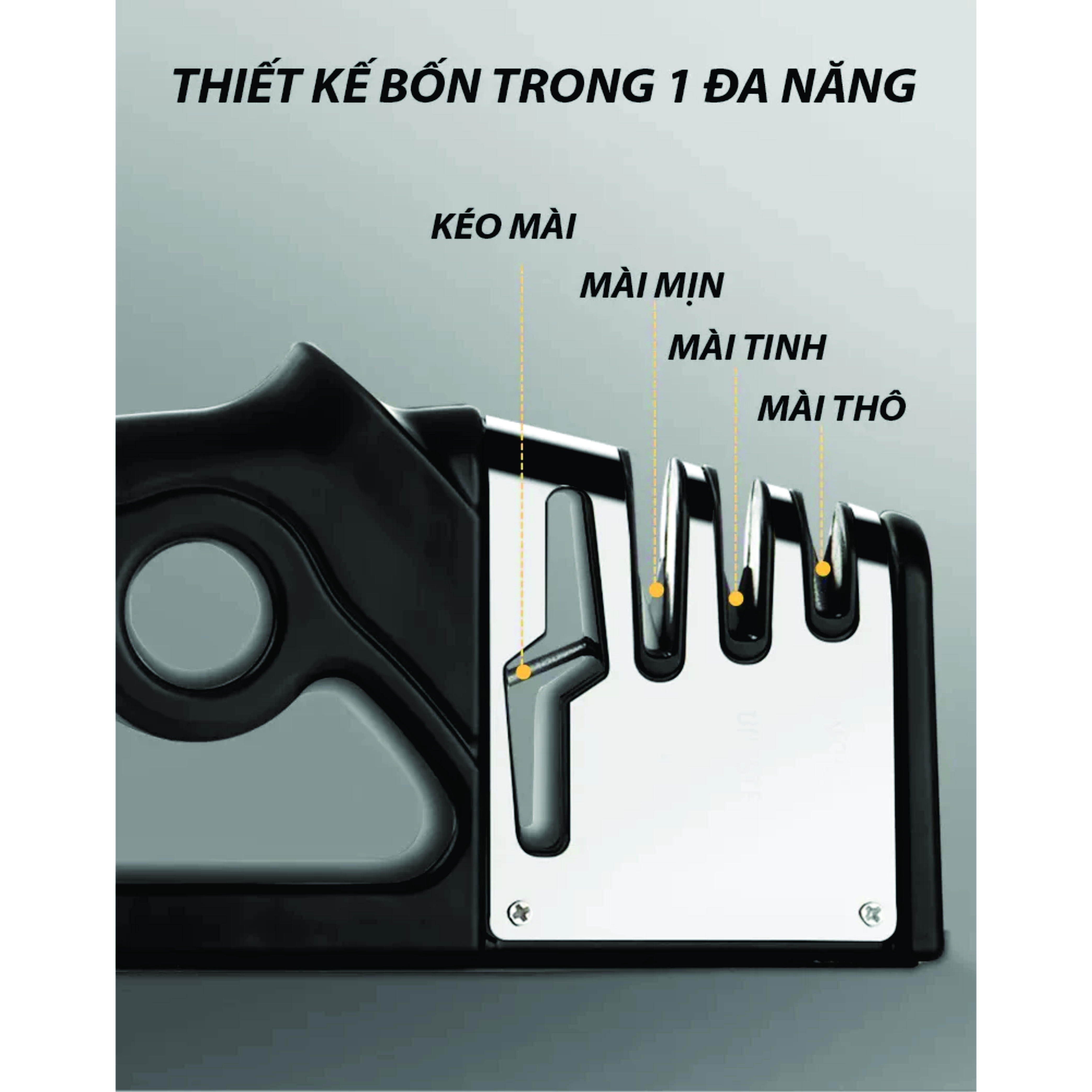 Giúp mài dao, kéo sắc bén, nhanh chóng mà không tốn nhiều công sức. Thiết kế đa chức năng, không chỉ có 3 chế độ : mài thô, mài mịn và mài sắc của dao