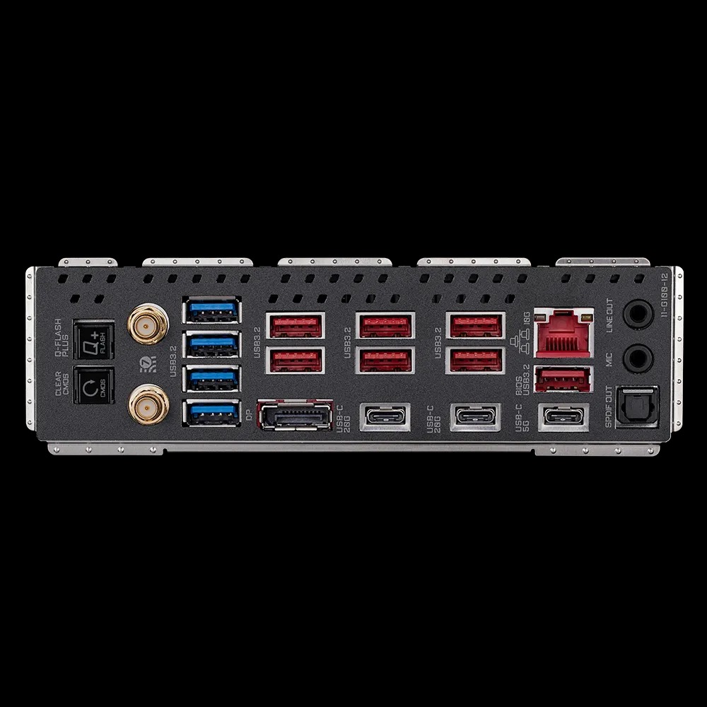 - 7 x Cổng USB 3.2 Thế hệ 2 Loại A (màu đỏ) ở mặt sau Chipset+2 Hub USB 3.2 Thế hệ 1: