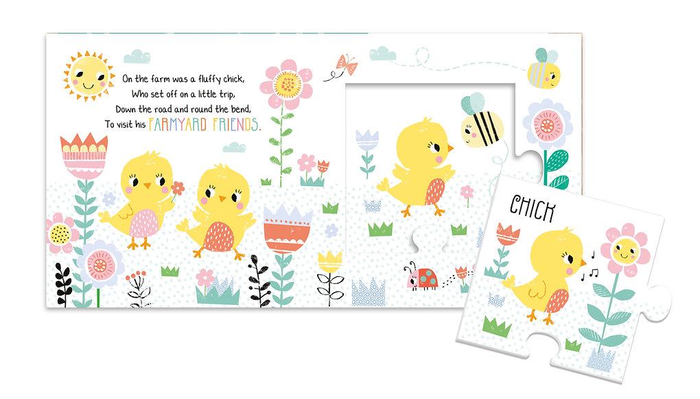 Join the cheeky baby chick as he meets lots of new Farm Friends in this beautifully illustrated, double-sided jigsaw book.