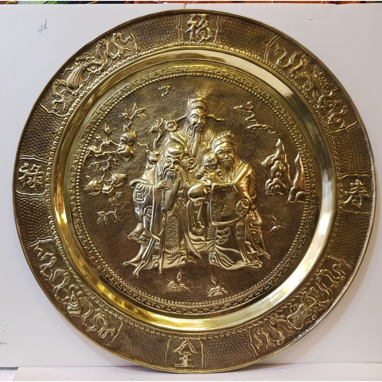 Mâm đồng vàng liền tấm thúc gò nổi – PHÚC LỘC THỌ ( TAM ĐA)