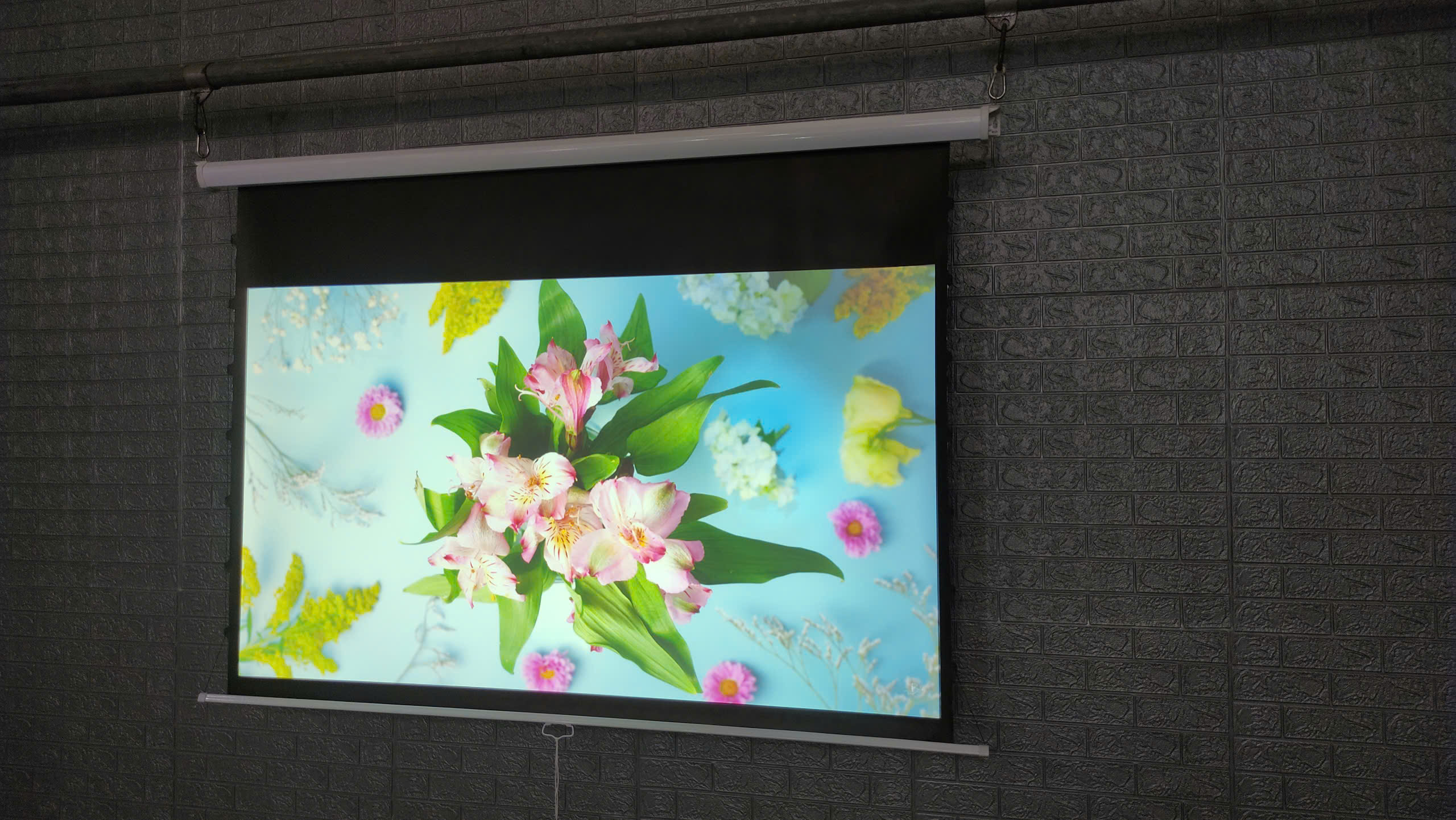 MÀN CHIẾU TREO TƯỜNG KÉO TAY CĂNG DÂY TAB TENSION EXZEN CHÍNH HÃNG KOREA (80” – 150”) – HỖ TRỢ 4K/8K, SIÊU PHẲNG, CAO CẤP Mặt vải siêu phẳng, không nhăn – Hình ảnh sắc