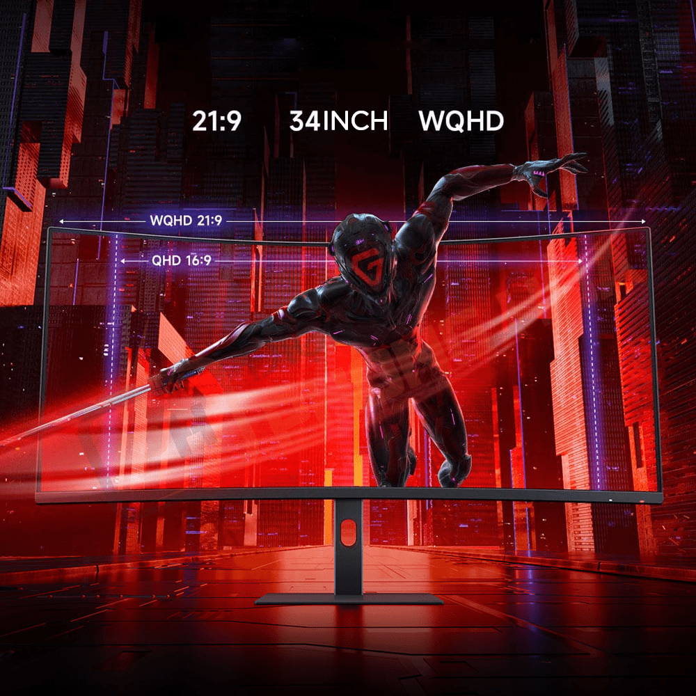 Redmi Monitor G34WQ có kích thước lớn đến 34 inch, mang lại trải nghiệm chơi game và giải trí mạnh mẽ. Với tỷ lệ khung hình 21:9, màn hình này tạo ra không gian hiển thị mở rộng và hấp dẫn, tạo điều kiện cho một trải nghiệm sống động và sâu sắc, khiến người dùng hoàn toàn đắm chìm vào thế giới của hình ảnh và âm thanh.