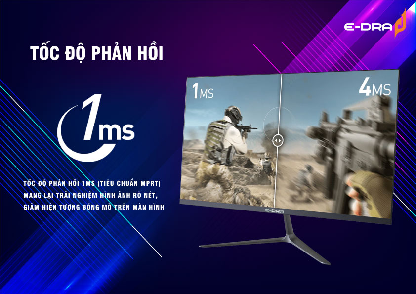 Màn hình máy tính E-DRA EGM24F1 Trong thời gian trở lại đây, chúng ta đều có thể thấy được một bước chuyển mình mạnh mẽ của E-DRA, dần trở thành một thương hiệu cực kì đáng lựa chọn với dải sản phẩm rộng lớn cùng mức giá thành không thể yêu thương hơn. Không chỉ nổi tiếng với những mẫu chuột, bàn phím, bàn hay ghế… màn hình gaming cũng là một trong những thế mạnh nổi bật của E-DRA. Trong bài viết ngày hôm nay, mình xin giới thiệu tới các bạn EGM24F1, chiếc màn hình Gaming cực kì đáng sở hữu và vừa được E-DRA cho ra mắt. Trải Nghiệm Mượt Mà Đến Ấn Tượng Đối với một chiếc màn hình gaming, tần số quét và tốc độ phản hồi luôn là hai yếu tố được quan tâm hàng đầu bởi những lợi thế vượt trội mà chúng có thể đem lại. Chiếc màn hình máy tính E-DRA EGM24F1 sở hữu mức tần số quét lên tới 144Hz cùng thời gian phản hồi chỉ 1ms. Đây là combo thông số thực sự vô cùng ấn tượng trong tầm giá, đảm bảo cho các bạn sự mượt mà trong từng khung hình cũng như giúp hạn chế tối đa hiện tượng bóng mờ chuyển động (ghosting) cực kì khó chịu. EGM24F1 sẽ mang đến cho các bạn những lợi thế cạnh tranh tuyệt vời so với đối thủ, luôn sánh vai cùng các bạn trên mọi bậc xếp hạng. Chất Lượng Hình Ảnh Hiển Thị Vượt Trội Nhờ được trang bị công nghệ tấm nền IPS cao cấp, E-DRA EGM24F1 sẽ đảm bảo mang đến cho các bạn một trải nghiệm hình ảnh chân thực, rực rỡ và đã mắt. Chiếc màn hình đến từ E-DRA có khả năng hiển thị 16,7 triệu màu kết hợp cùng góc nhìn cực rộng lên tới 178 độ, mang đến cho các bạn những trải nghiệm màu sắc tuyệt vời nhất kể cả khi các bạn xem cùng nhiều người, ngồi ở nhiều góc độ khác nhau. Không dừng lại ở đó, EGM24F1 còn sở hữu độ phân giải FHD (1920x1080) cùng độ sáng màn hình vượt trội lên đến 250 cd/m2. Mang đến những hình ảnh chi tiết, sắc nét cùng độ sáng tối ưu kết hợp với độ chân thực màu sắc cao giúp các bạn hoàn toàn có thể thực hiện những công việc đồ họa cơ bản trên chiếc màn hình. Thiết Kế Chuẩn Gaming Đối với một chiếc màn hình gaming, thiết kế hầm hồ luôn là một trong những yếu tố cực kì được quan tâm. Và không phụ lòng mong đợi từ cộng đồng người dùng, E-DRA đã trang bị cho chiếc màn hình EGM24F1 một thiết kế cực kì ấn tượng. Màn hình có phần tầm nền siêu mỏng mang lại vẻ sắc sảo, mặt lưng là logo E-DRA kết hợp cùng những đường vân cá tính chạy dọc theo thân máy. Chân đế chữ V vừa đem lại sự cá tính cho chiếc màn hình, vừa giúp tiết kiệm không gian trên bàn làm việc trong khi vẫn đảm bảo sự chắc chắn cho chiếc màn hình khi sử dụng. Hỗ Trợ Đa Dạng Cổng Kết Nối Chiếc màn hình đến từ E-DRA này còn sở hữu khá đầy đủ cổng kết nối để các bạn có thể thoải mái lựa chọn và sử dụng. Chiếc màn hình gaming EGM24F1 sẽ bao gồm 1x cổng HDMI, 1x cổng DisplayPort, 1x cổng USB và 1x cổng Audio 3.5. Trong vỏ hộp sẽ có sẵn 1x dây DisplayPort để các bạn có thể sử dụng chiếc màn hình ngay khi mua về mà không phải lo lắng gì thêm.