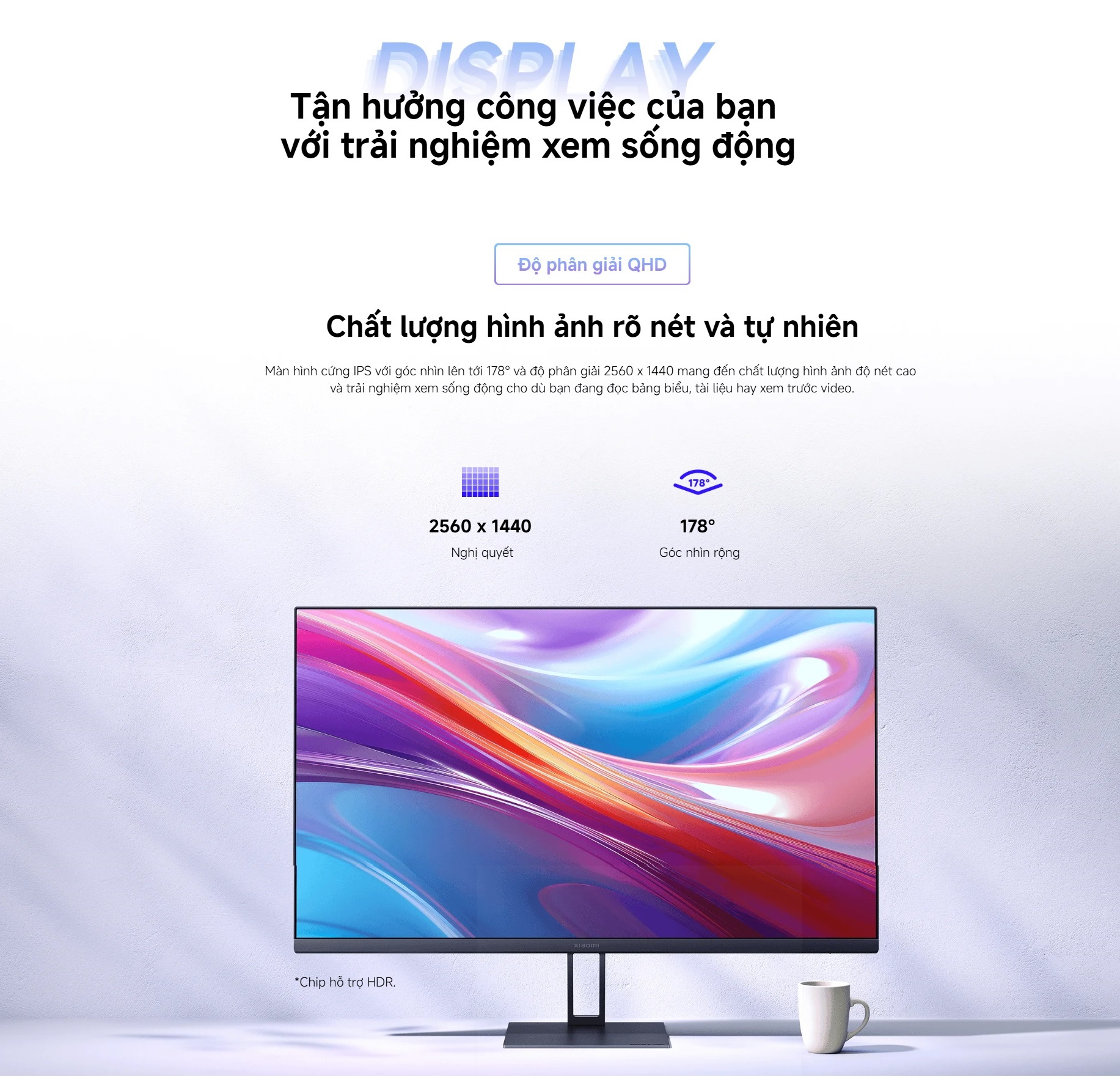 Xiaomi Monitor A27Qi – Màn hình 2K cao cấp cho công việc và giải trí Độ phân giải 2K QHD – Chi tiết sắc nét, không bỏ sót gì Màn hình A27Qi sở hữu độ