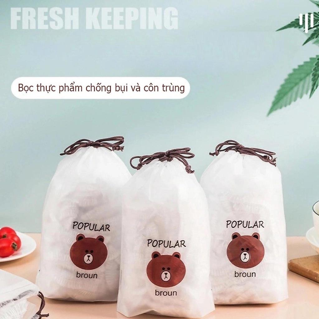 Màng bọc thực phẩm co giãn set 100 chiếc siêu dai có chun hình túi gấu